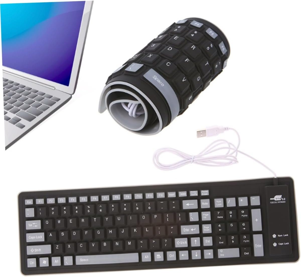 Foldable Silicone Keyboard Made of silicone material, this keyboard is and , specially designed for protecting your 103 key keyborad from everyday tear and wear, and meanwhile give you and accurate operation.USB Wired Keyboard Therefore, it is really a wonderful gadget for choice