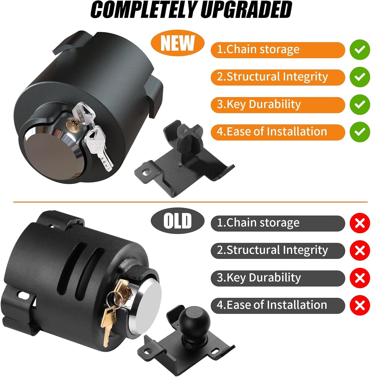 Upgraded for Real-World Demands—Chains, Shields & Peace of Mind – Truckers and boaters spoke; we listened. More chain storage? Check. Full-coverage shielding? Done. This streamlined lock hugs your hitch snugly, surviving daily abuse from gravel roads to marina docks. Protect RVs, motorcycles, or campers at RV parks, storage facilities, or your own driveway. No bulky tools, no hassle—just proven theft defense. Because your adventures deserve armor, not anxiety.