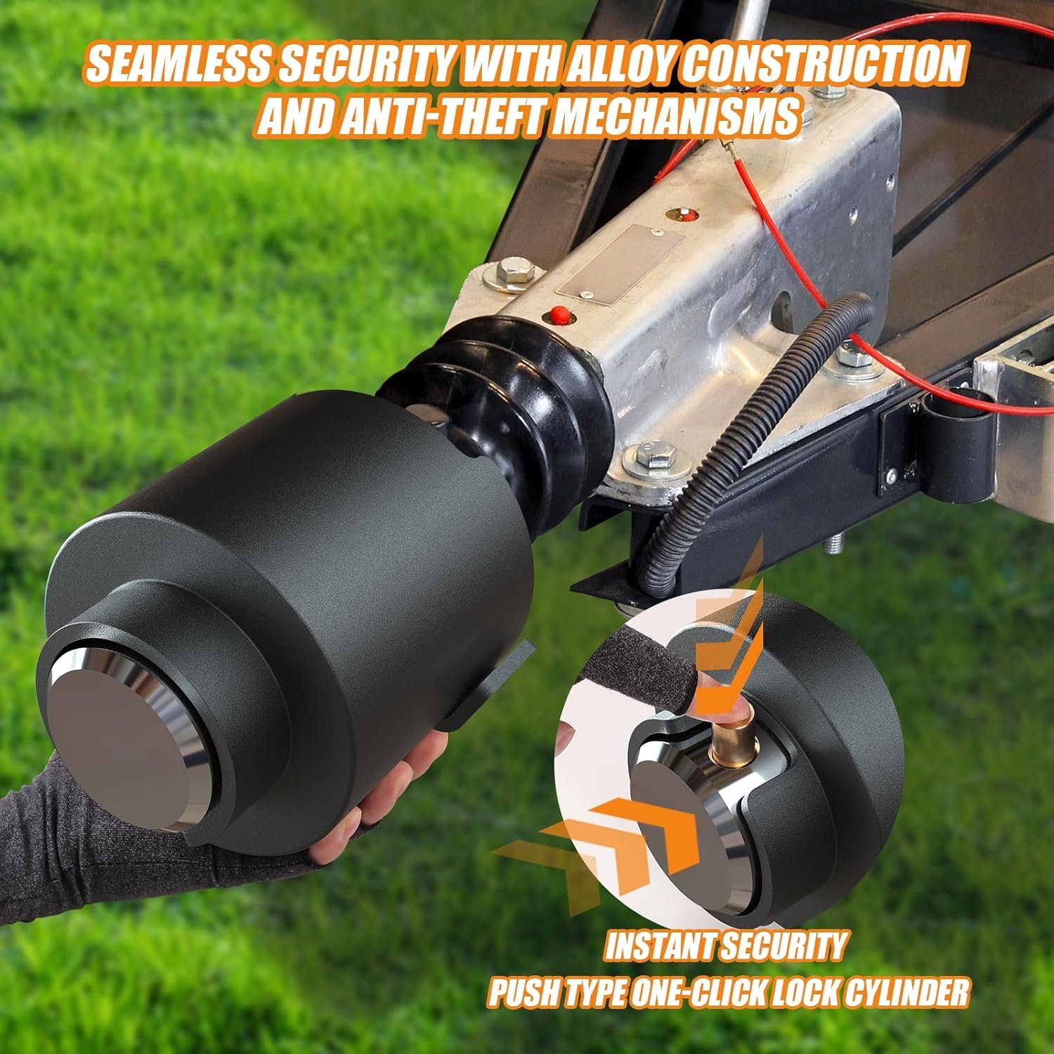 Lock in Seconds, Unlock with Theft-Proof Confidence – No fumbling for keys to lock up! The patented push-button puck lock secures your coupler in one swift motion—ideal for hurried stops at truck stations or chaotic job sites. Need to hitch up? Three unbreakable keys (with anti-pick grooves and drill-resistant pins) ensure quick access. Perfect for pop-up campers, cargo trailers, or utility rigs left unattended at storage yards or construction sites. Just click, and go—your gear stays shielded.