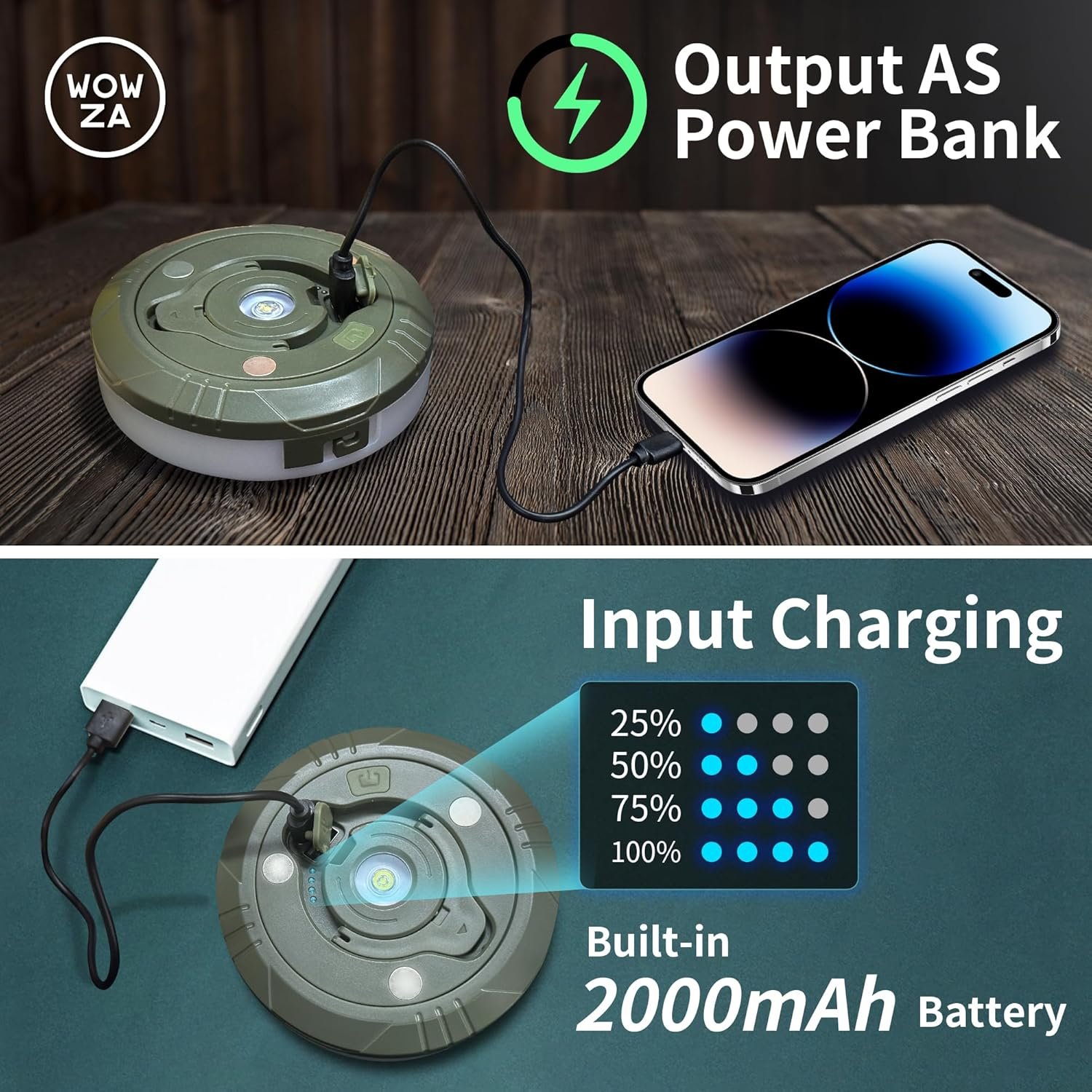 Convenient & Waterproof : Rotate the handle for 30 seconds to retract the strip; The camping rechargeable string lights are lightweight at only 0.46 lb 7.4 oz ; With a compact design diameter: 4.3 inches; height: 1.4 inches ; The portable lantern string lights adds romance to gardens yards tents and more