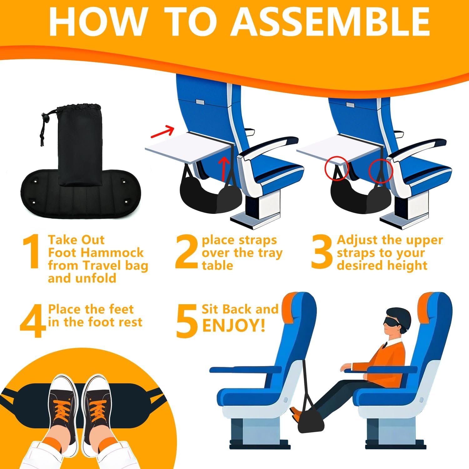 DELICATE COMFORT;Foot Sling For Airplane Travel Ensuring Your Feet Receive Intimate Care Our Foot Hammock For Airplane Travel is Guaranteed to Provide You With Comfort This Practical Travel Foot Rest For Airplane Flights Set is Nice To Use on The go And is Also Suitable as a Present For Family, Friends, or Colleagues