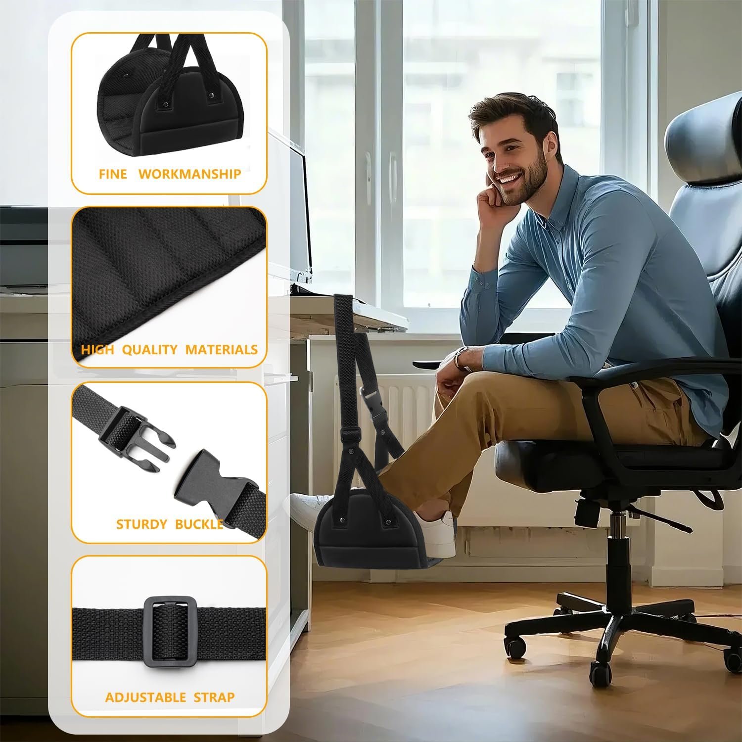 PREMIUM MATERIALS;This Leg Hammock For Airplane Travel Is Made Of Quality Material And The Foot Hammock Under Desk Contains Soft Foam Inside Airplane Footrest For Long Flight Which Makes It Soft And Comfortable To Use Whether At Home, In The Office, While Watching a Movie, or on a Journey You Can Experience The Ultimate Foot Comfort