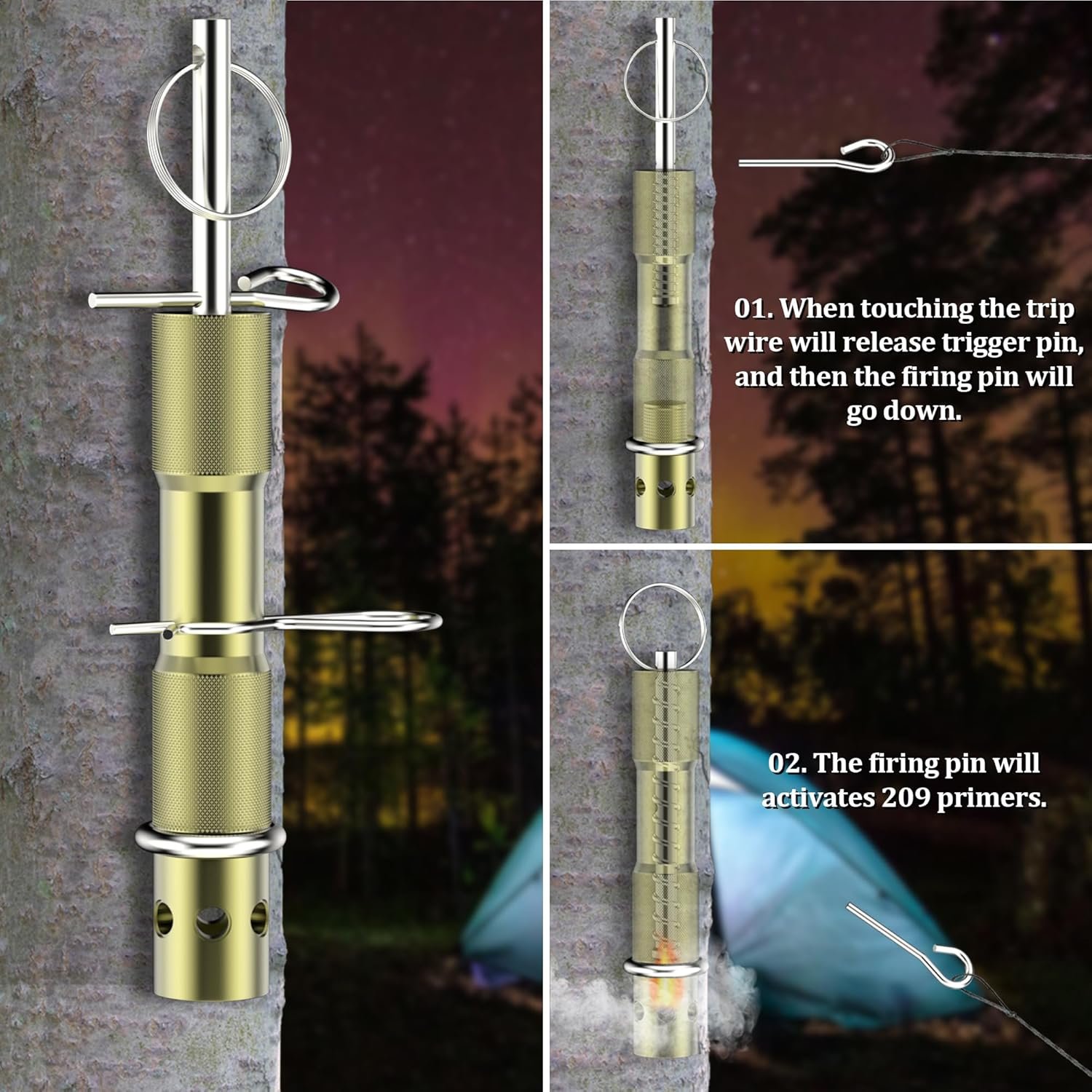 【High Quality and Reusable】Made of 6061 recycled aluminum and rustproof body, the perimeter alarms are spring triggered, reloadable, and endlessly reusable for your property and personal security. Camping trip enthusiasts or anyone who needs effective protection of their property should not miss this external trip wire alarm device.