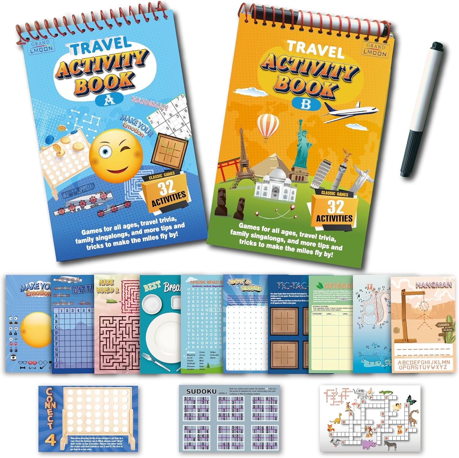 32 Activity Pads: Including mega popular educational games like Tic-Tac-Toe, Connect 4, Battleship, Hangman, Puzzle, Sudoku, Word Search, Categories, Sketch practice and more. Get these fun games once for all in 2 pads. Travel sized fit well in your purse or glove compartment.