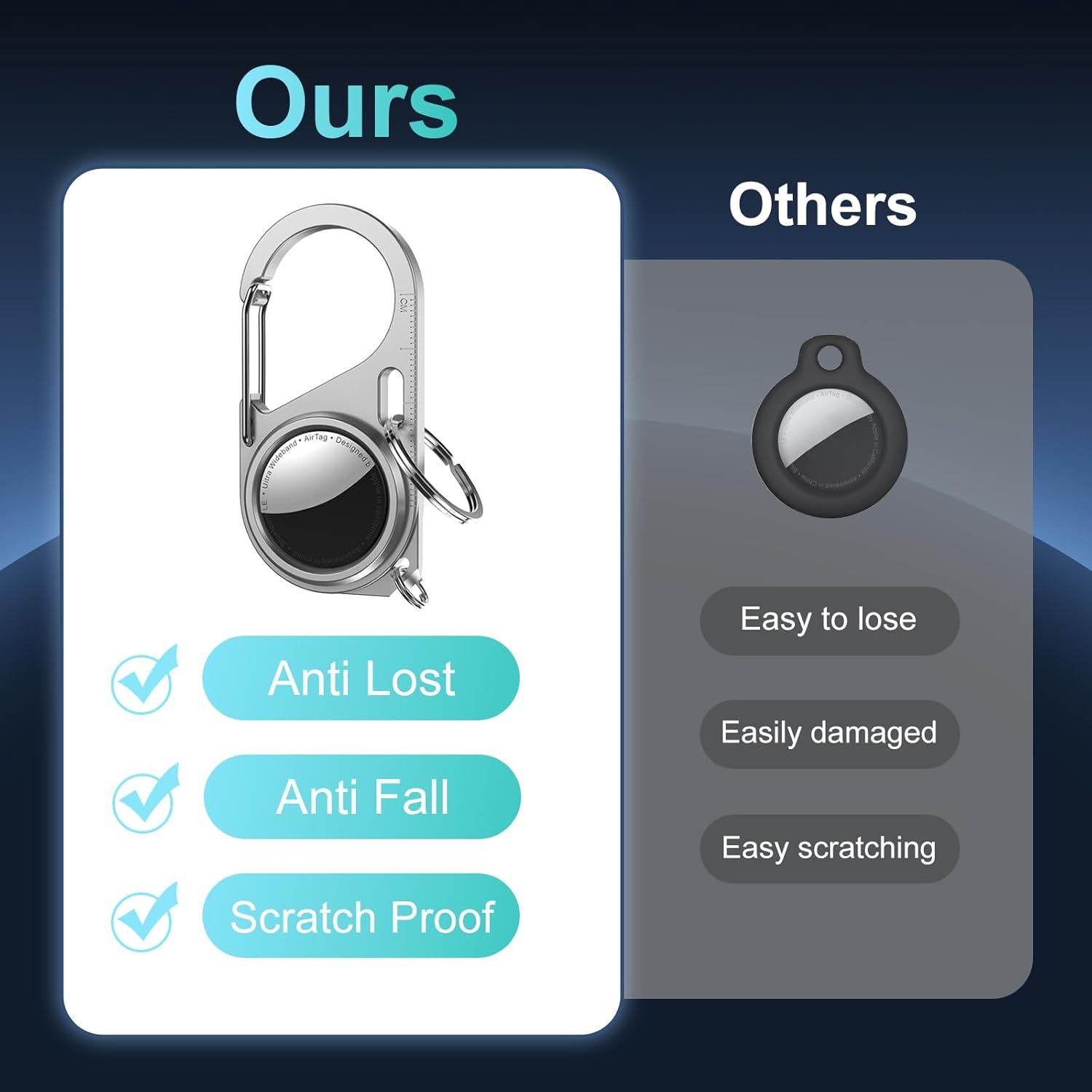Dependable: Crafted from sturdy metal alloy with a sleek matte finish and sturdy design, this AirTag keychain case provides unparalleled shockproof protection. Shield your AirTag from scratches, drops, impacts, and other forms of damage by equipping it with this robust armor.