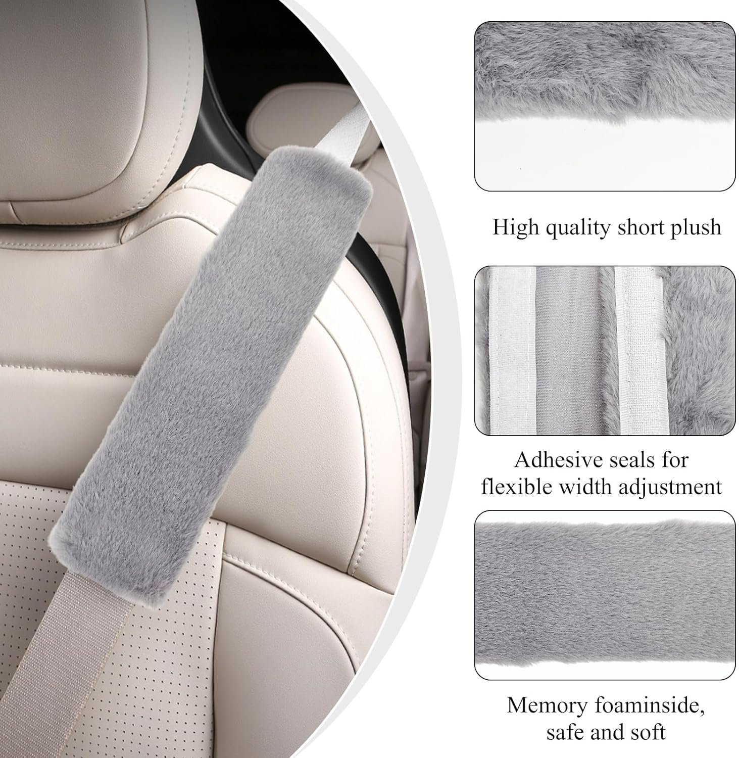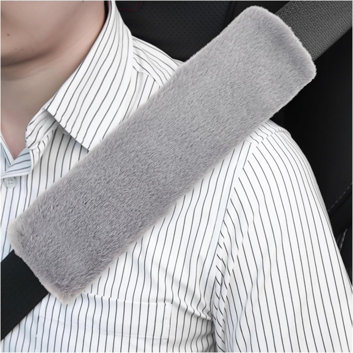 2 PCS Car Seatbelt Covers, Comfortable Shoulder Strap Pad for Children and Adults, Soft Plush Seat Belt Protector for Most Cars, Sedans, Trucks, Universal Car Accessories (Gray)