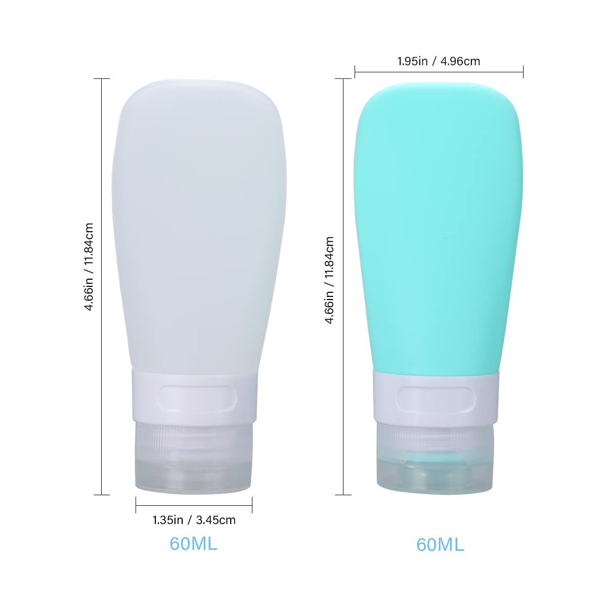 2 Pcs Silicone Travel Bottles,2oz Leak Proof Refillable Squeeze Containers with Transparent Carry Bag,Small Empty Travel Size Bottles for Shampoo,Conditioner,Lotion,Toiletries