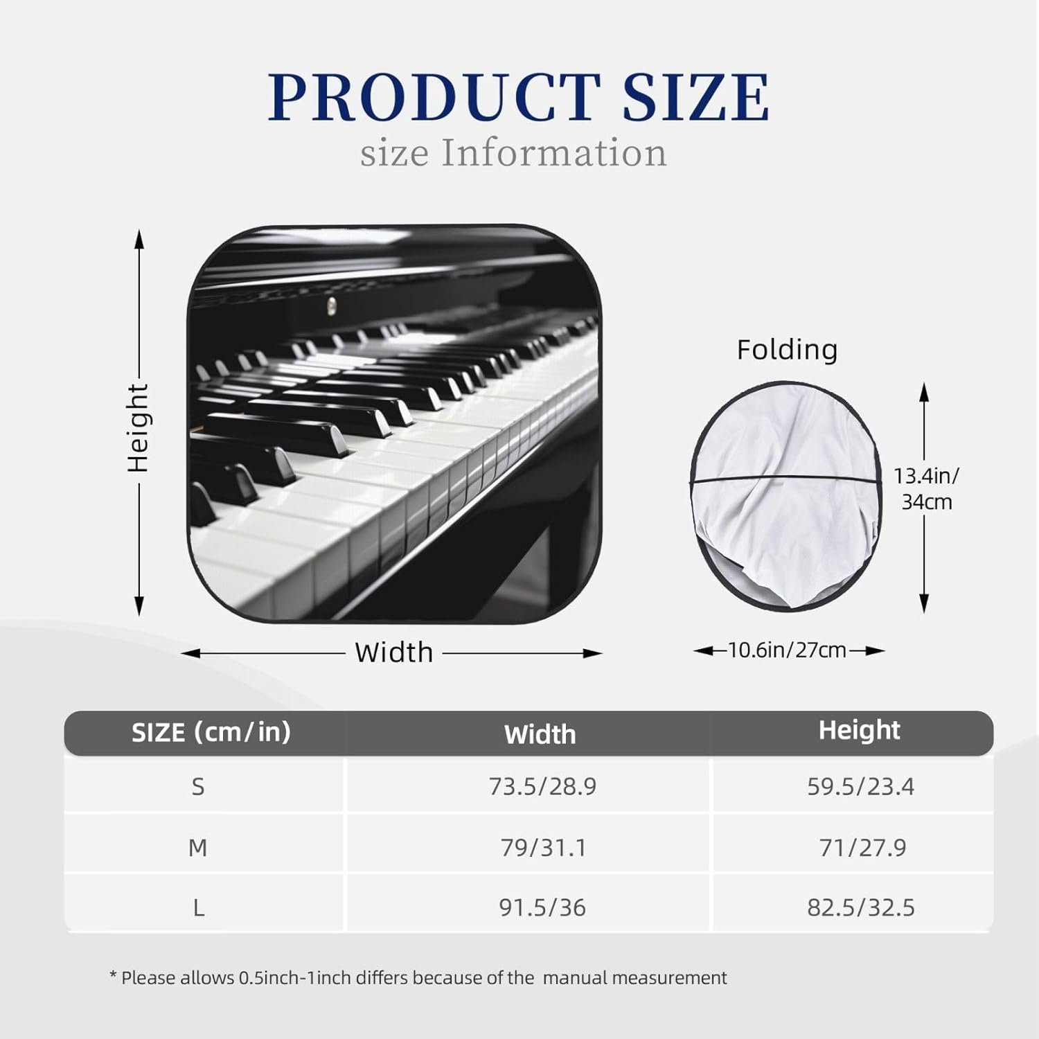 This auto Black White Piano Keyboard windshield sunshade can provide your car with UV and sun protection, which can prevent the dashboard from fading and cracking, protect the car interior, and effectively reduce the temperature inside the car, keeping the car cool in hot and sunny weather, making your journey more comfortable.