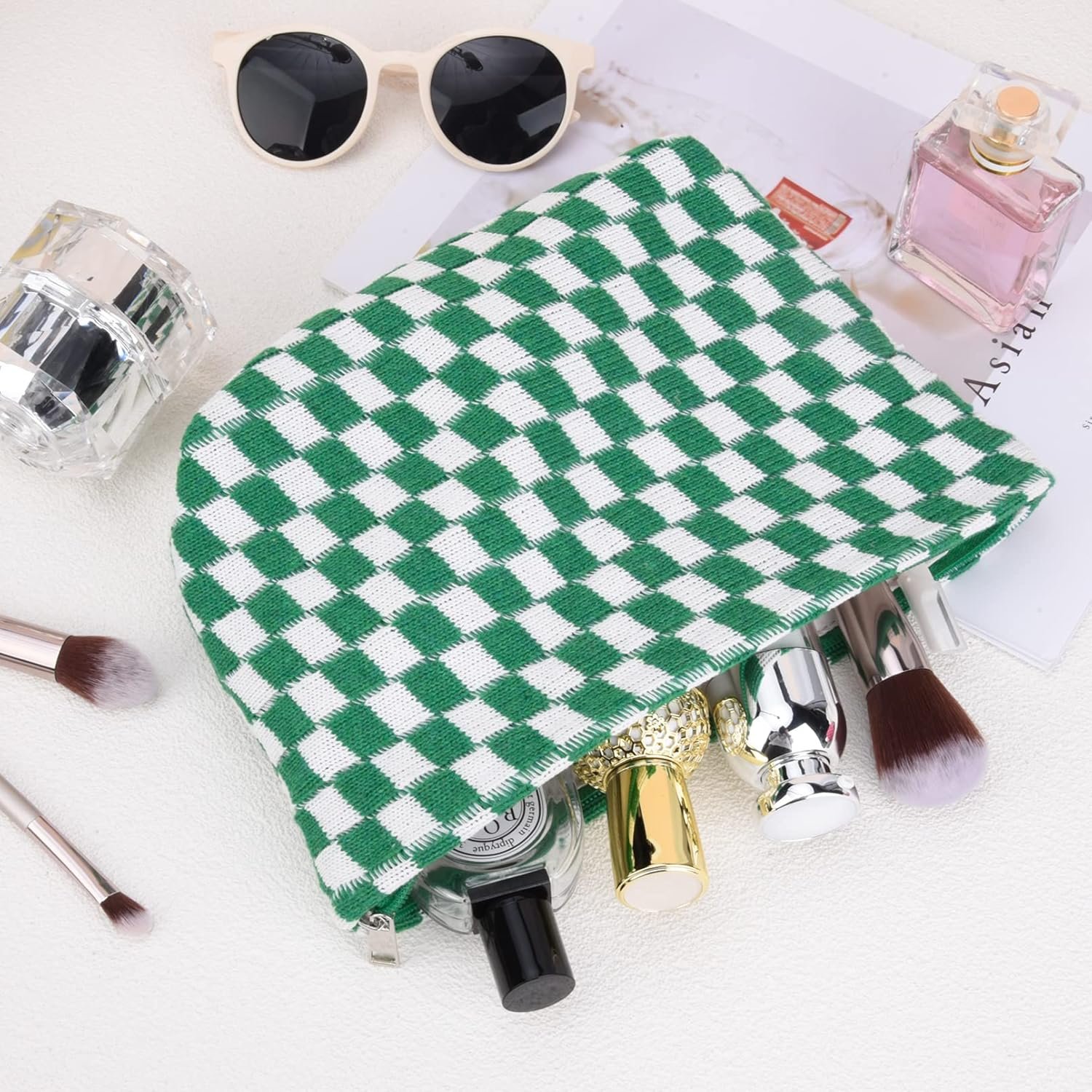 Fashion Design– You will get 2 pack make up bag in total.Green and Pink checkered travel bag, distinctive pattern design and color matching, original and always popular, ideal for carrying and using during your travels