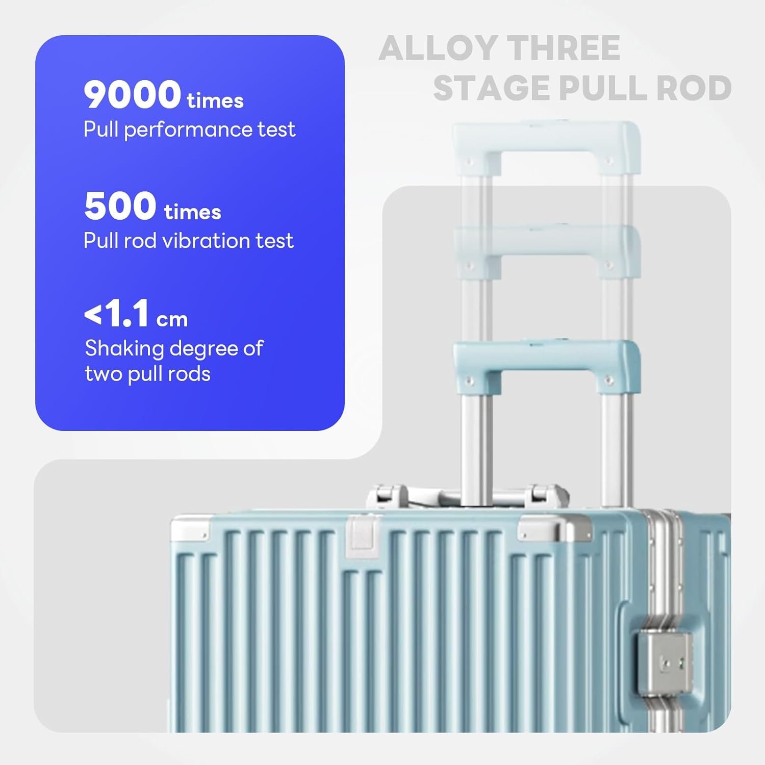【Multifunctional Houlder Design】aluminium frame carry on luggage, Especially designed water cup holder that can hold drinks or umbrellas. The controller is designed with a phone holder, which can free up both hands when watching videos. To provide you with an efficient and orderly travel experience. Keep your hands free and avoid carrying extra items, providing a comfortable and convenient travel experience.
