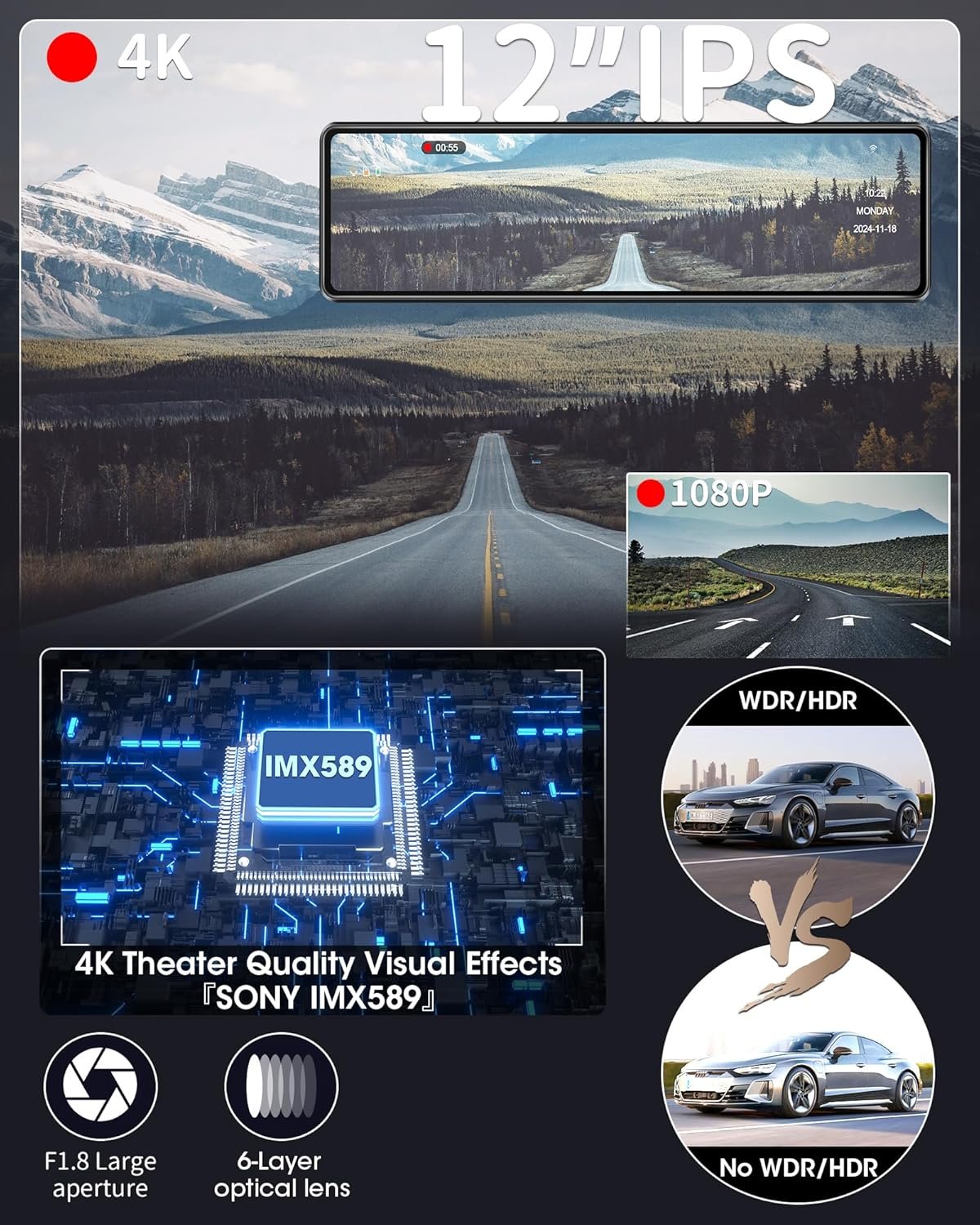 2025 New with wifi-function 12-inch 4K ultra HD mirror dash cam with high performance chip “SONY IMX589”!!!!!