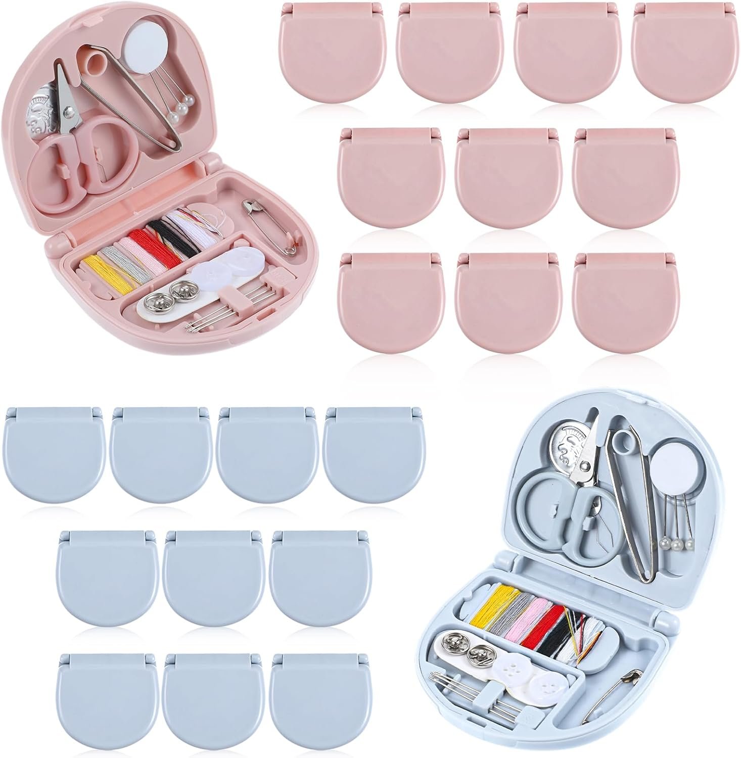20Pcs Travel Sewing Kit Portable Mini Sewing Kit Travel Size Emergency Repair Kits for Traveler Homeless with Needle Thread and Small Scissor (Blue, Pink)