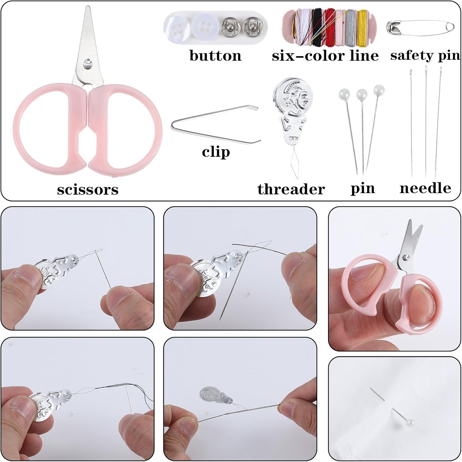 【Multifunctional Accessories】Mini sewing kit contains a complete set of efficient and practical sewing tools, including 3 dowel pins, 1 pair of scissors, 1 needle threader, 1 safety pin, 1 pair of tweezers, 2 snaps, 2 pearl buttons, 3 hand sewing needles and 1 six-color thread board. The portable sewing kit allows you to quickly handle various sewing needs in daily life no matter where you are