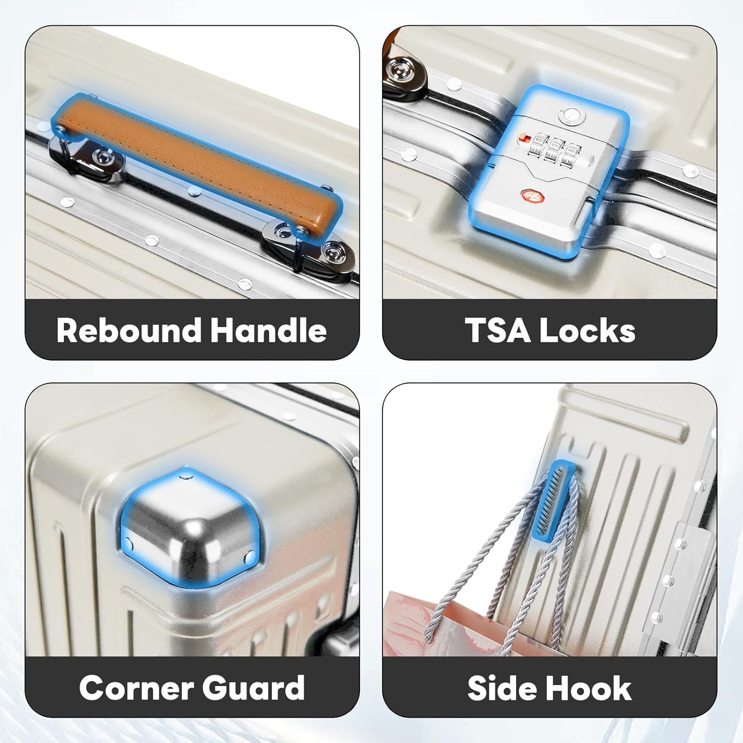 【High-Quality Materials】Lightweight 22 inch carry on luggage with spinner wheels with Superb Durable Material: The suitcase Used ABS+PC+Aluminium Frame Lightweight Hardside material to prevent dents and scratches. At the same time, unique corner protectors help protect high impact areas during travel