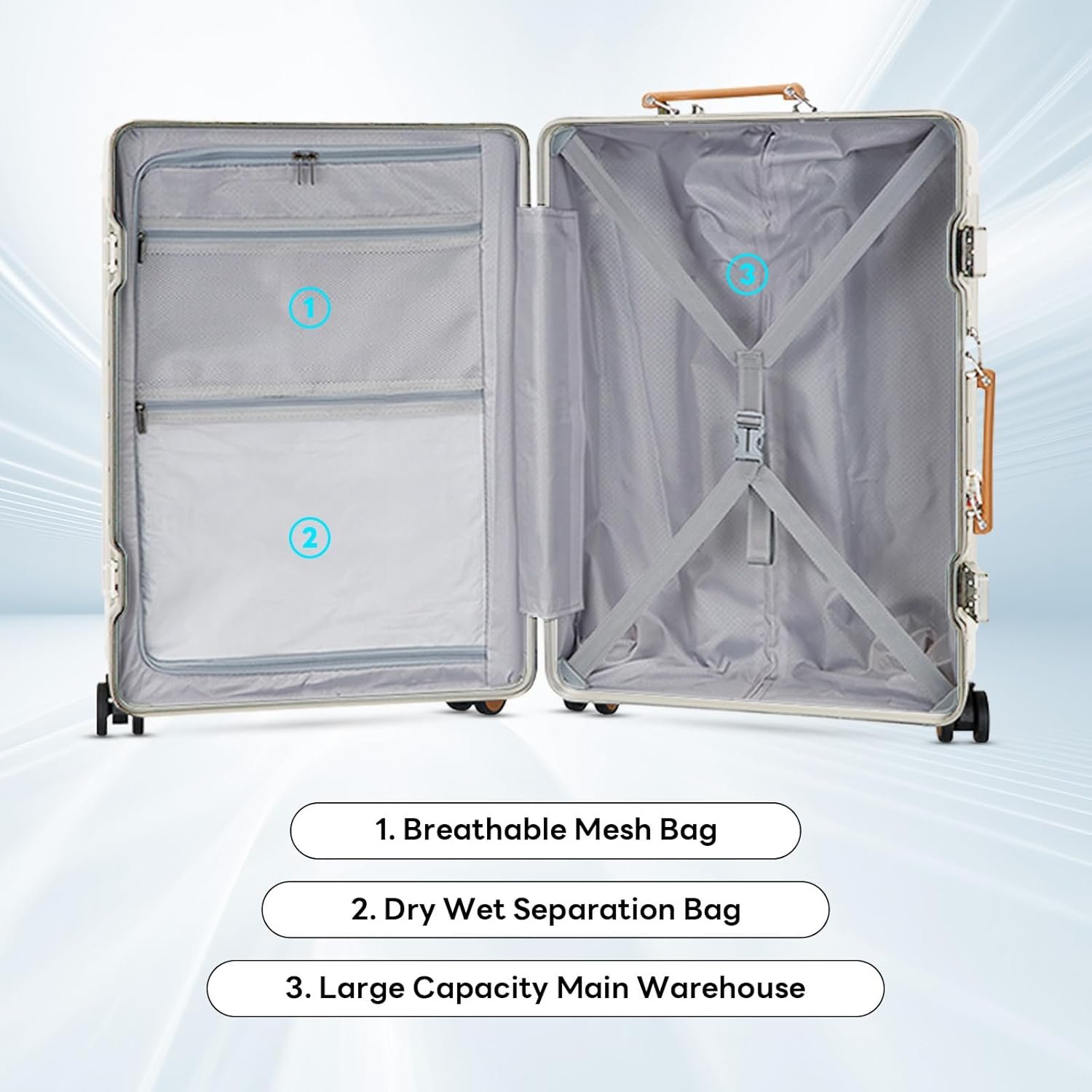 【TSA Lock & 360° Anti Noise Spinner Wheels】22 Inch Carry-on Luggage Mounted TSA LOCKS extremly improved safety, TSA Airline Approved locks can protect your valuable items and provide security for your journey. Glide through airports effortlessly with silent 360° spinner wheels. Navigate with minimal noise for a seamless journey