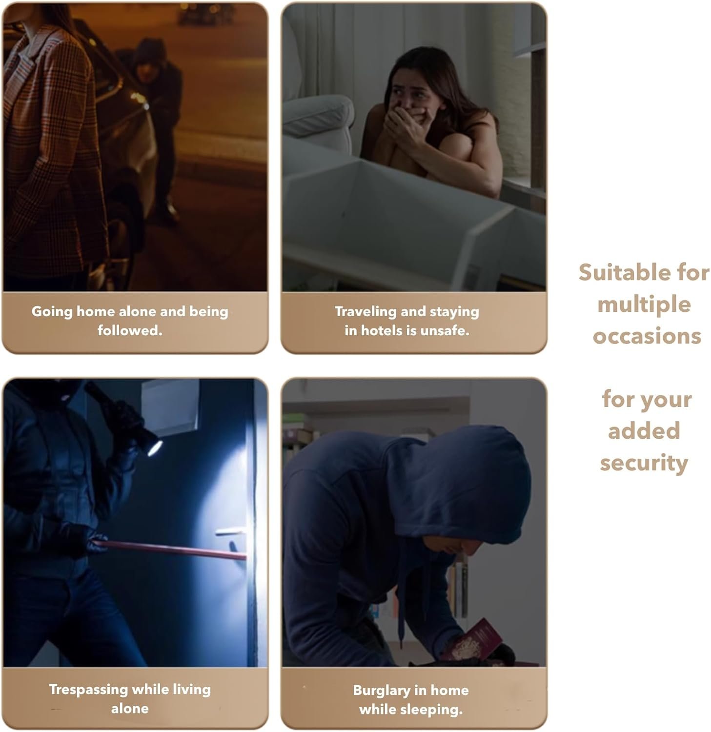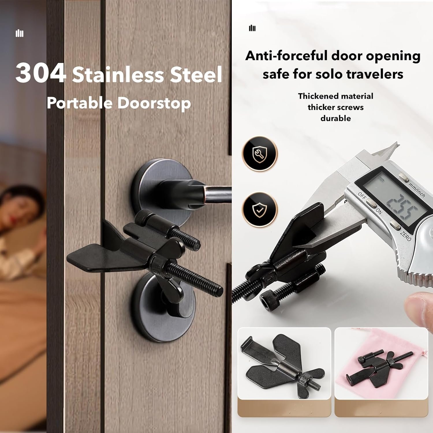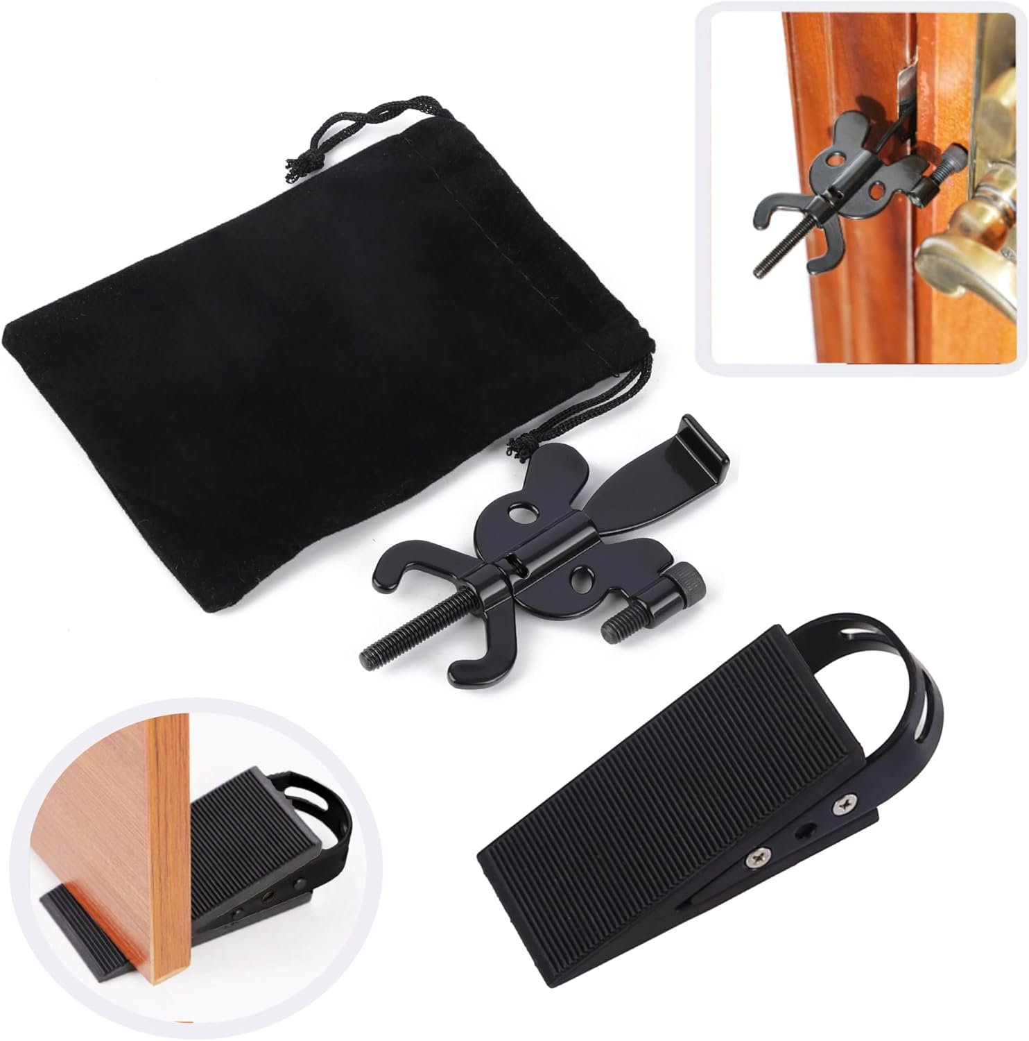 🚪【Fits Most Doors】 Compatible with a wide range of inward-opening hinged doors.🔒 Feel Safe Anywhere: Block intruders, get extra privacy, and enjoy worry-free sleep on trips or at home. Door gaps need to be greater than 0.12 inches.