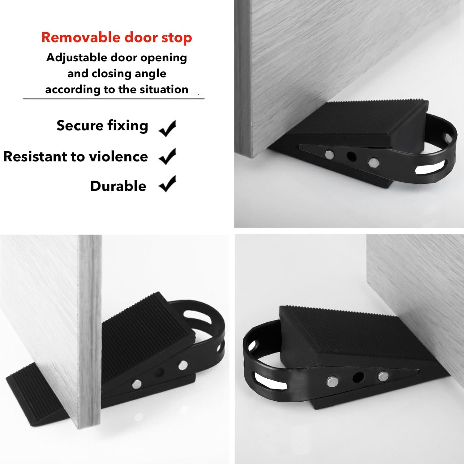 💪 【Built to Last】The whole body of the door stoper is made of sturdy 304 stainless steel material, not easy to corrode, strong and durable. Defense against criminals to enter, there are keys and pry door locks can not be opened!