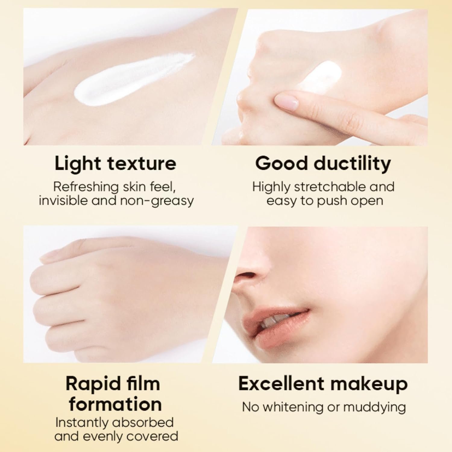 【Hydrating Sunblock Face】Infused with Vitamin E, our face sunscreen korean for dry skin not only protects but also deeply moisturizes your skin. The hydration blend in the sunscreen moistunzer face korean skincare helps boost moisture in the skin, leaving skin feeling soft and nourished