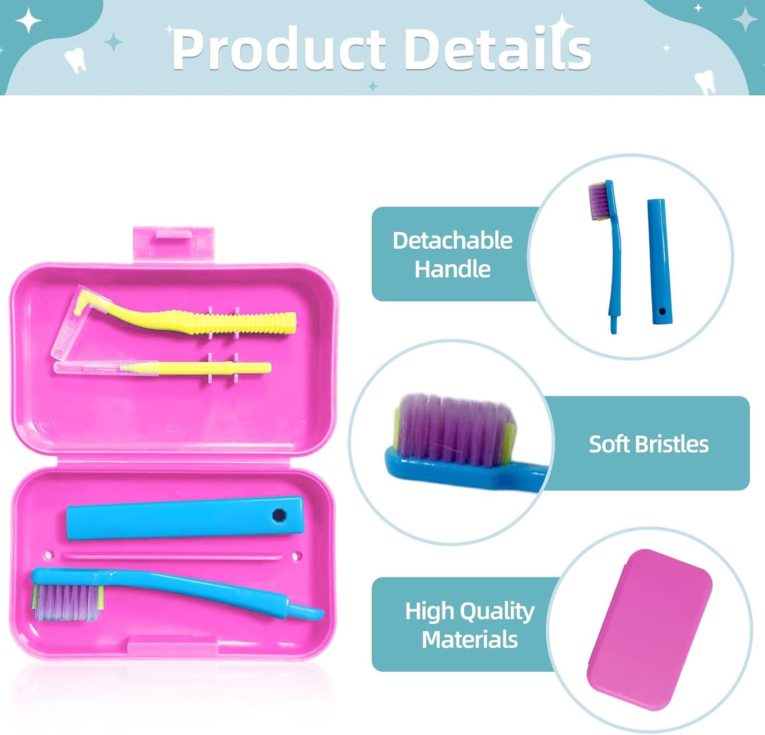 EFFECTIVE INTERDENTAL BRUSH: The interdental brush in this kit is perfect for cleaning between teeth and braces, helping to maintain cleanliness in areas that are difficult to access with regular brushes.