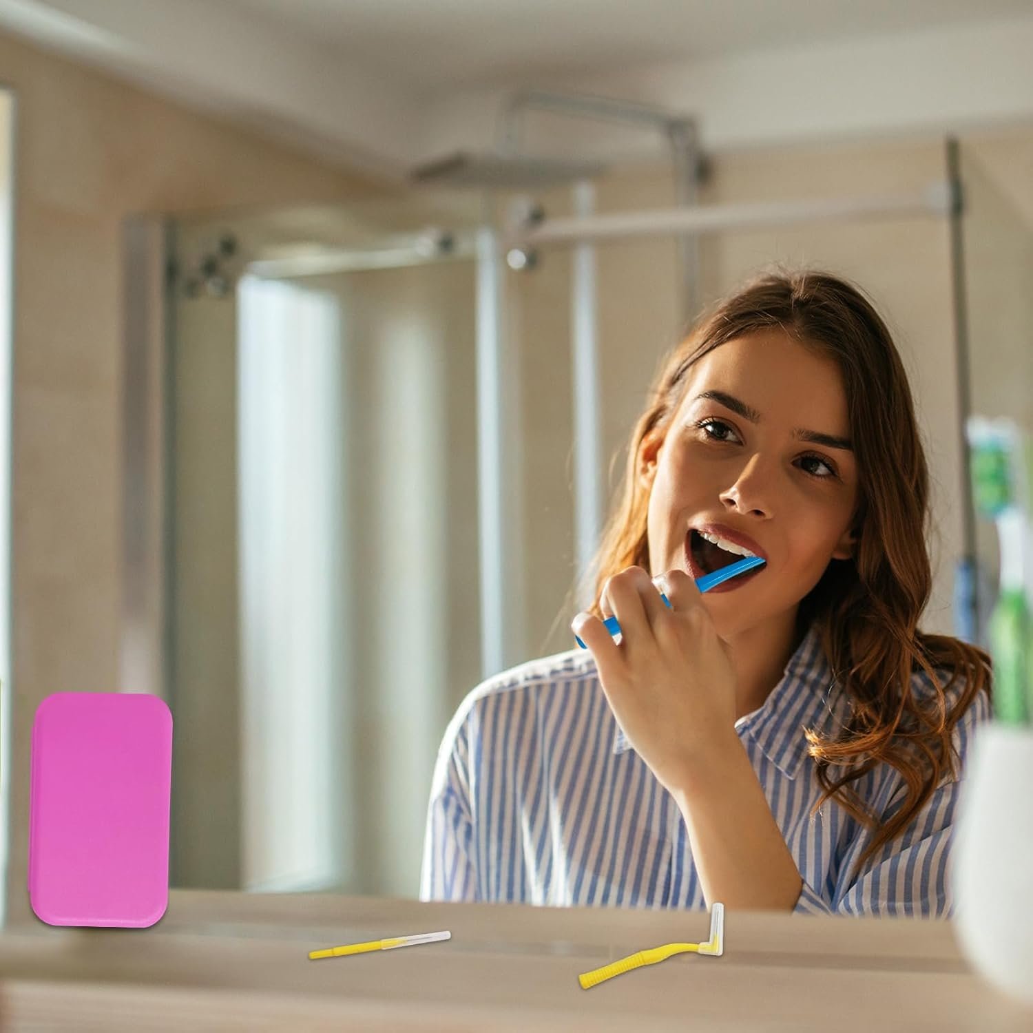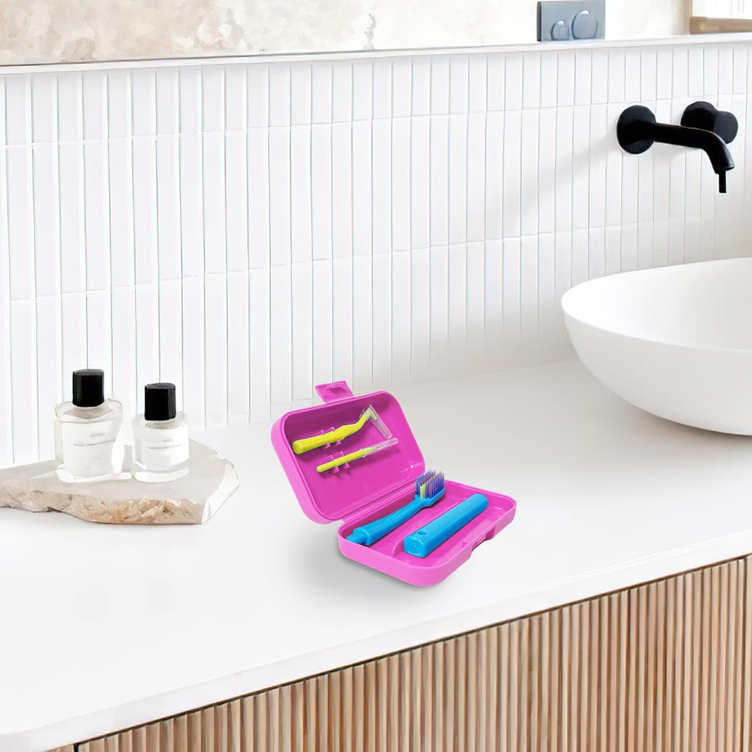 PORTABLE TRAVEL CASE: The 4 x 2.4-inch (10.2 x 6.2 cm) travel case weighs just 1.62 oz (46 g), keeping all tools neatly organized, hygienic, and protected. It’s ideal for travel or storing your dental care essentials at home.