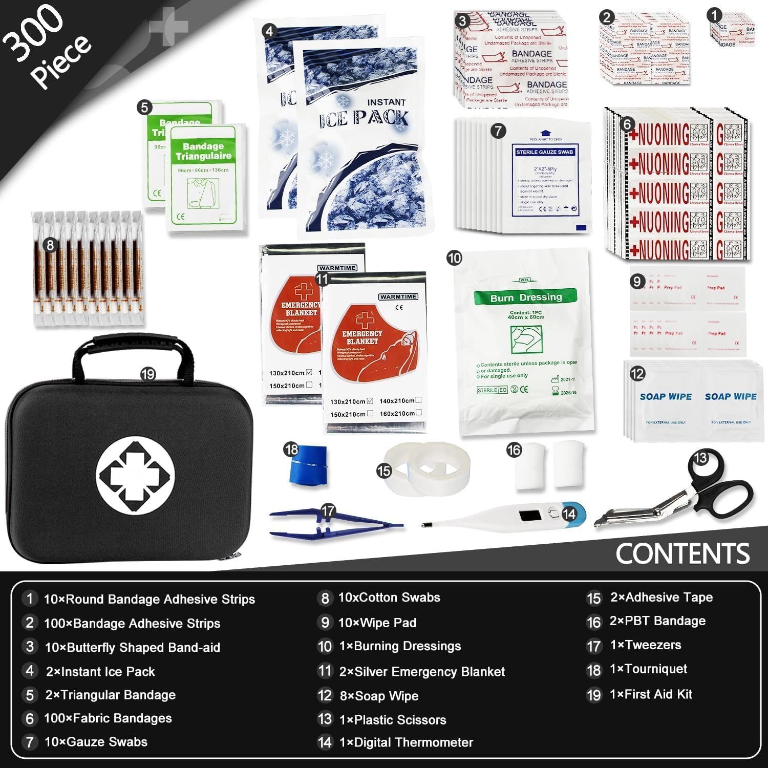 300PCS Home First Aid Kit for Hiking Car Travel Emergency Kit First Aid Bag Outdoor Backpacking Gear for Disaster Preparedness Black Monoki