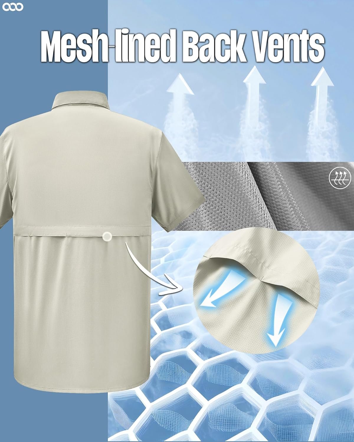 33,000ft Men’s Fishing Shirts Lightweight Cool Quick Dry Sun Protection UV Short Sleeve Shirt for Casual Hiking Safari Travel
