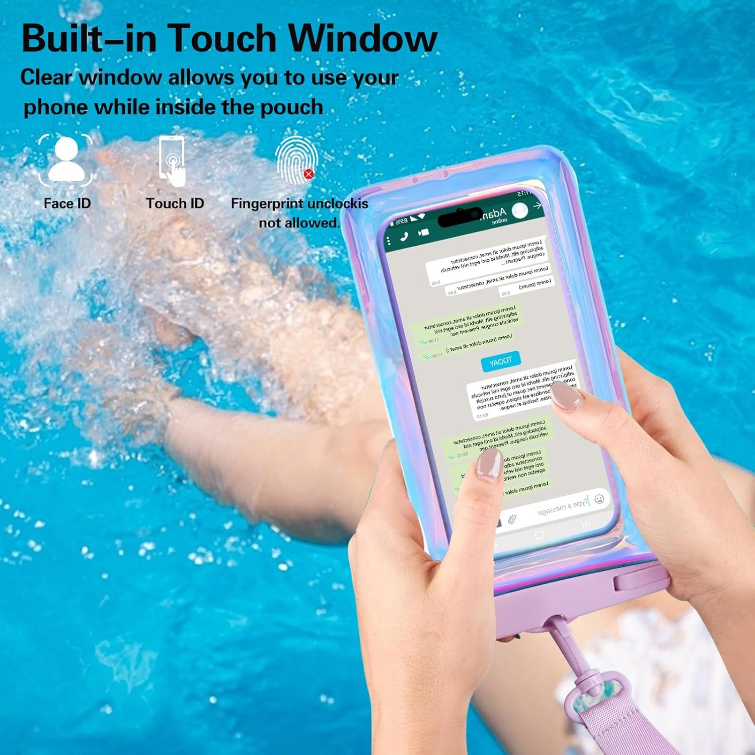 Application: The waterproof pouch case is vacation Essentials for Aquatic Sports.it perfect for swimming,beach trip, underwater snorkeling, surfing, boating, skiing,fishing,kayaking,rafting.