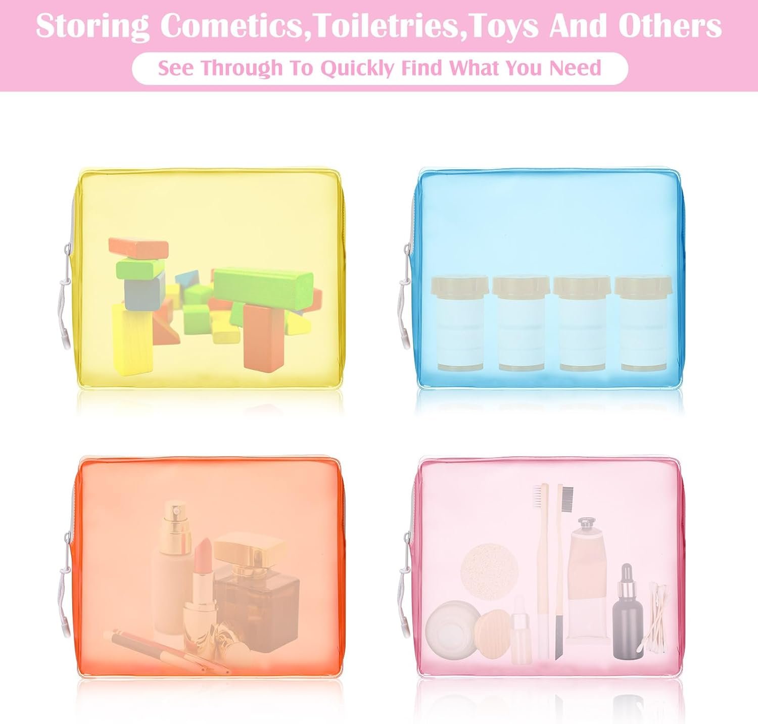 4 Pack TSA Approved Travel Toiletry Bags Frosted Translucent Leak-proof Cosmetic Makeup Bags for Women Men Travel Organizer Airport Security (Pastel)