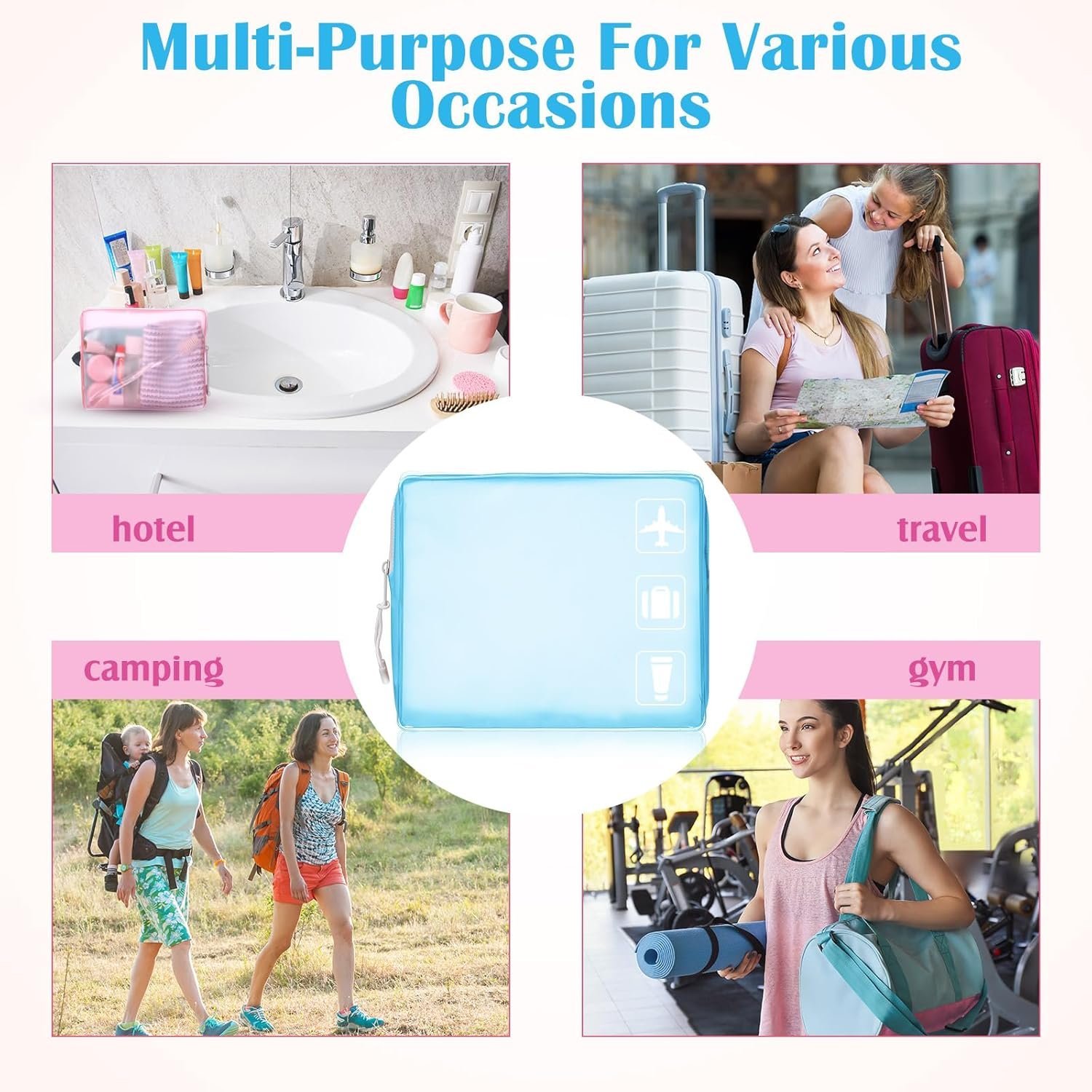 Convenient to Distinguish: these travel toiletry bags adopt mist frosted surface design; Light color and translucent bag can help you quickly search and access item, which are ideal storage bags for cosmetics, drugs, USB cables, headphones and power banks; Dark color bags are opaque, which enhance the privacy protection of your belongings