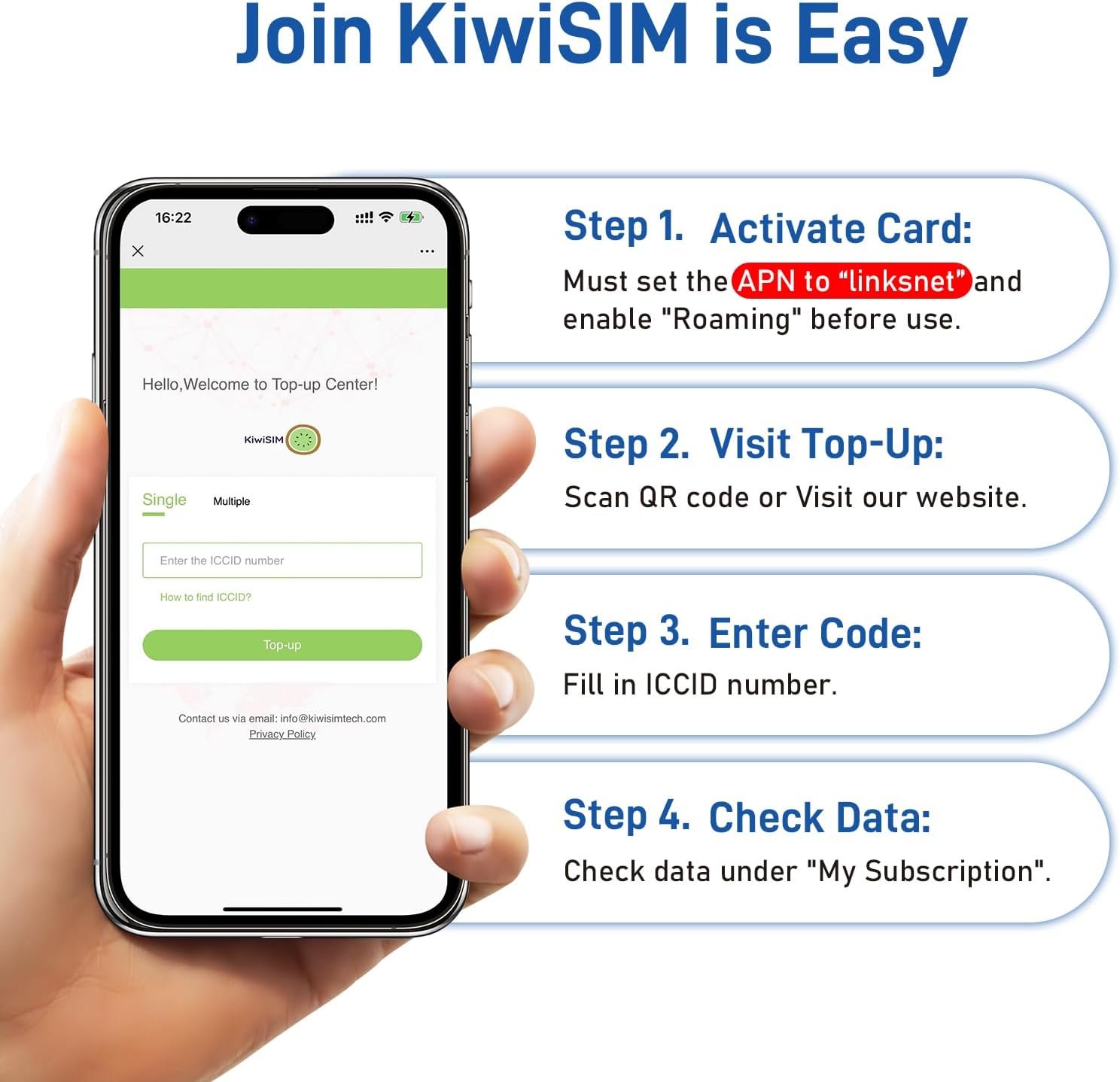 【Safe and Convenient】Enjoy a hassle-free experience with KiwiSIM: no contracts, no activation fees, no credit card required, and no mobile phone bills. While it only provides data services without SMS or calling, you can easily communicate with others using various messaging apps.