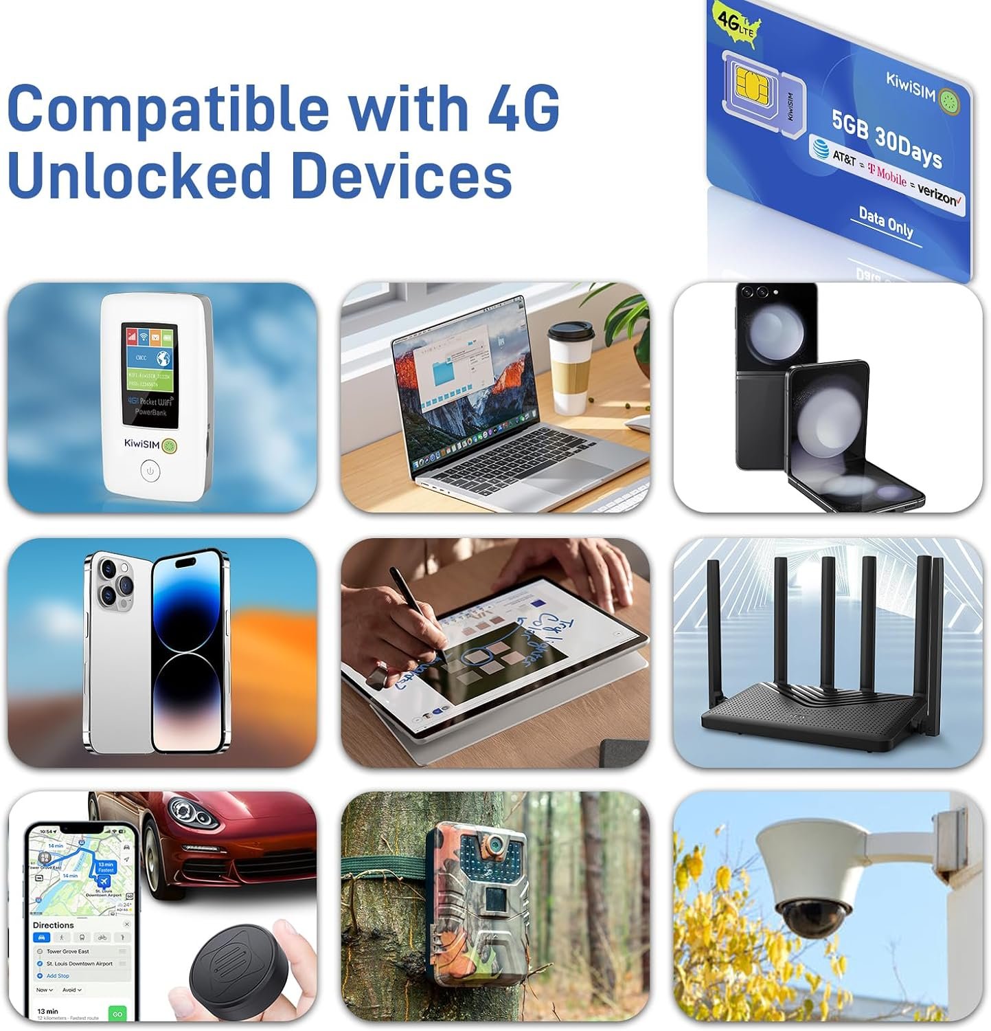 4G Data Only SIM Card, Support for AT&T/T-Mobile/Verizon USA Coverage, Compatible with Unlocked Hotspots/Routers/GPS Trackers & Portable WiFi Devices,3 in 1 SIM(5GB 30 Days),No Contract