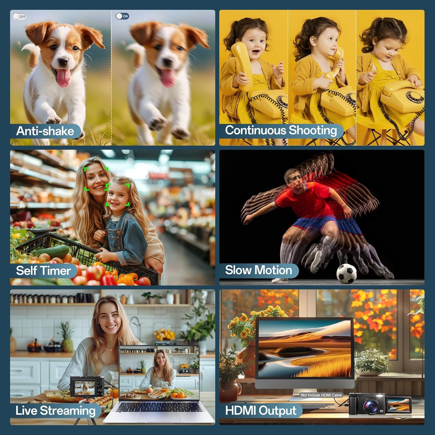 【48MP 4K Digital Camera for Photography】— 2025 Upgraded digital camera has all the modes you need for photography or video, support 48MP image resolution and record 4K Ultra HD video with pause function, the 48MP resolution delivers sharp and vibrant images, while the 4K video recording function produces clear, high-definition footage, the 4k digital camera also comes with a 32GB SD card, making it ready for immediate use, which is a great convenience, support 16x digital zoom is perfect for both beginners and more experienced content creators alike