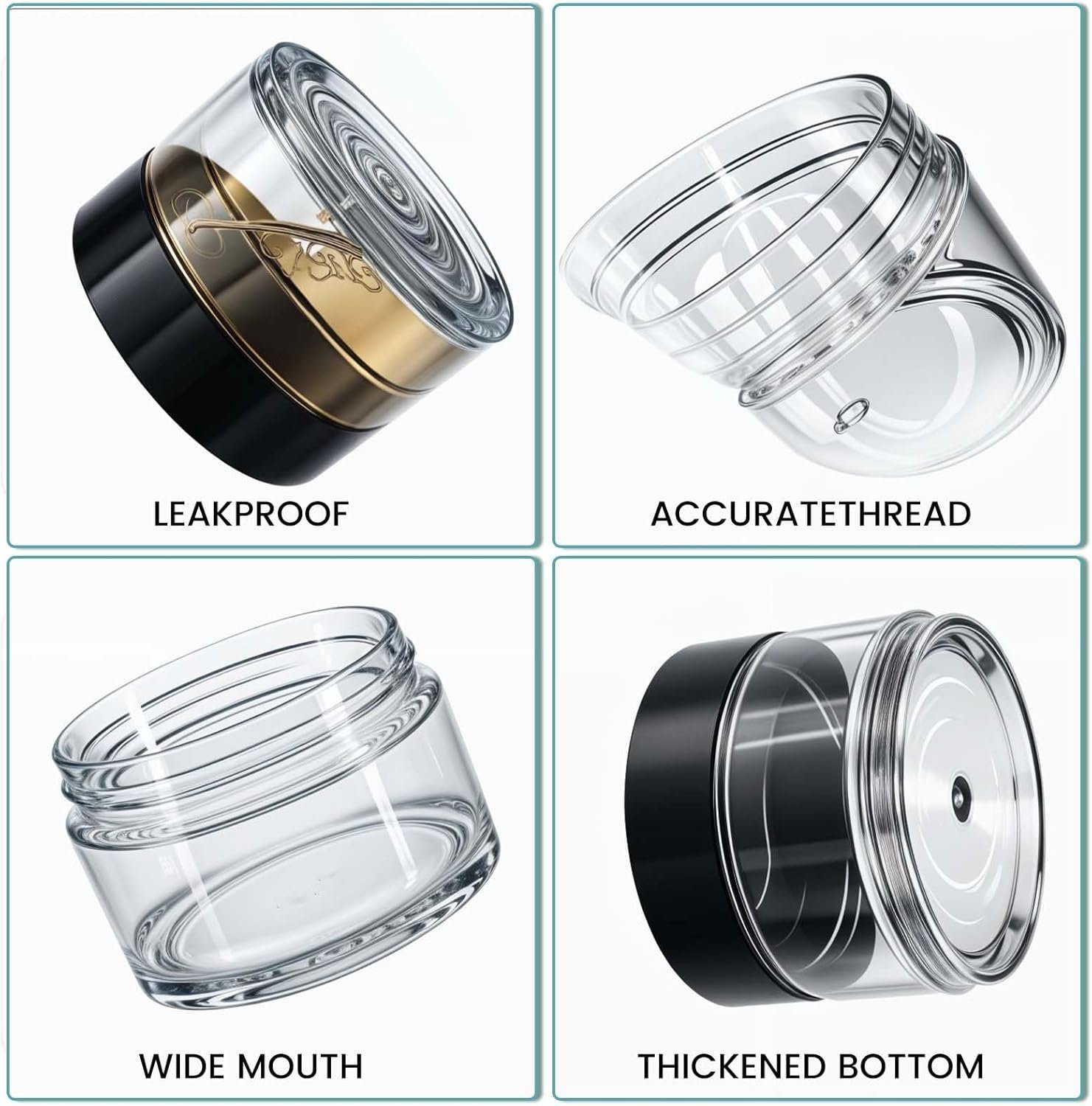 【Travel Containers for Creams】: Designed as travel containers for creams, these jars ensure that your skincare products remain fresh and effective. The leakproof design prevents spills and leaks, allowing you to travel with peace of mind. Whether you’re storing face creams, body lotions, or other beauty products, these containers are up to the task.