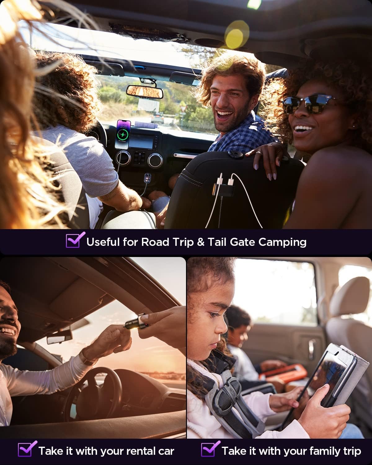 📱Universal Compatibility: Compatible with all QC enabled electronic devices, car charger for iPhone&Android phones, iOS&Windows tablets, power banks, video game controllers, sports watch, cameras, and other USB-powered devices. Universal for 12-24V vehicles adapts to mainstream vehicle types such as cars, SUVs, trucks, and off-road.