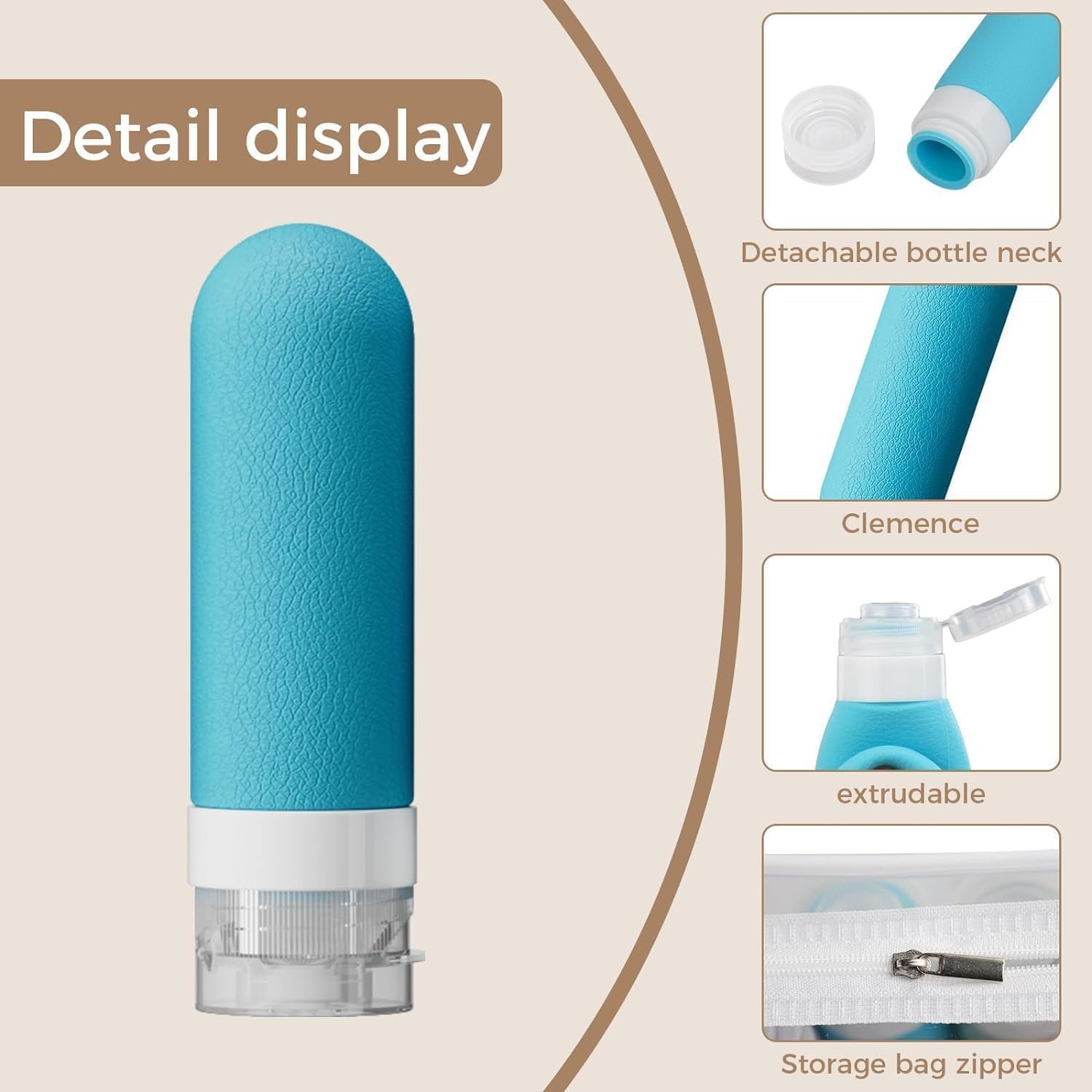 【Material】:The portable travel bottles is made of silicone, soft, squeezable, fillable and reusable. Sturdy and durable, portable and lightweight, easy to carry and cleaning.