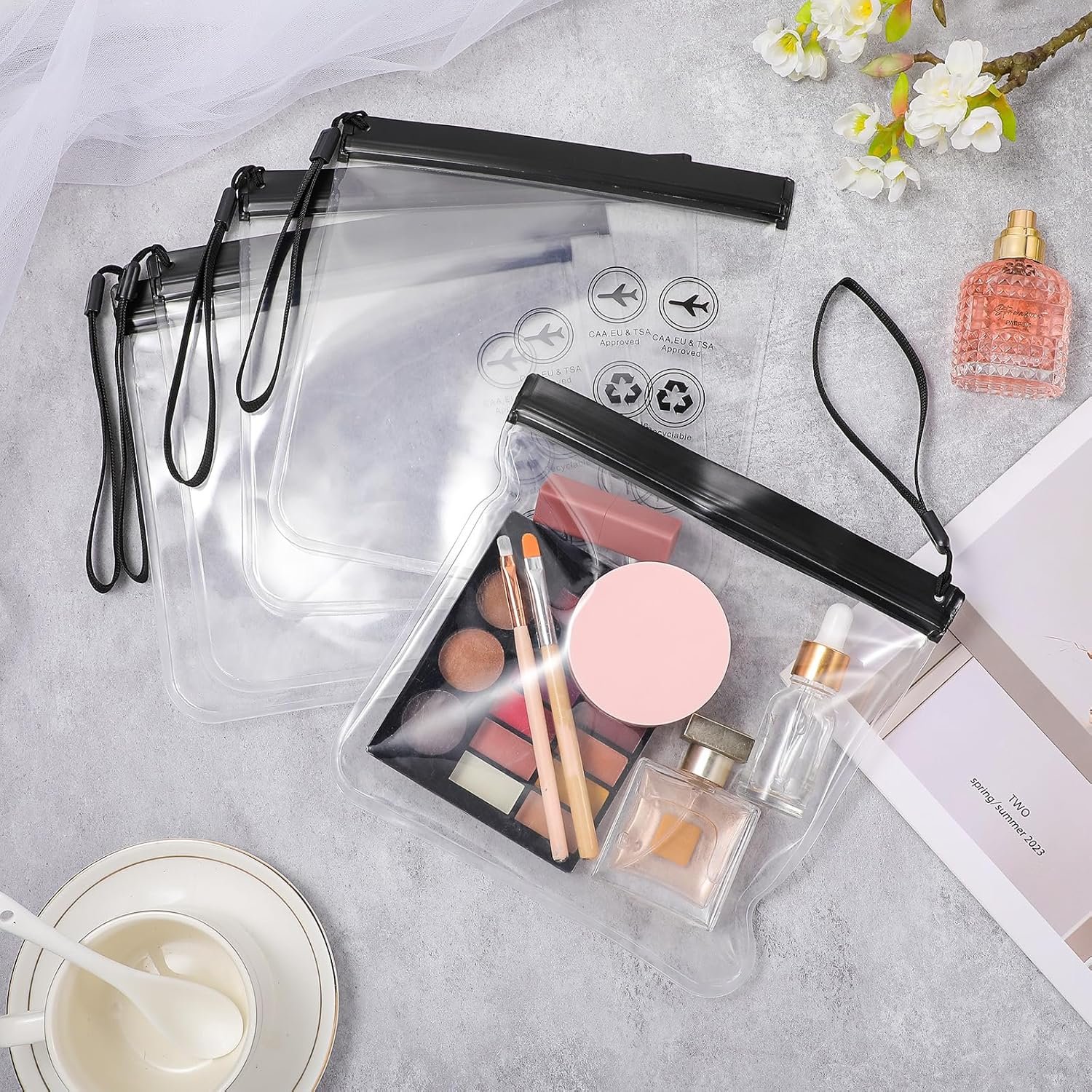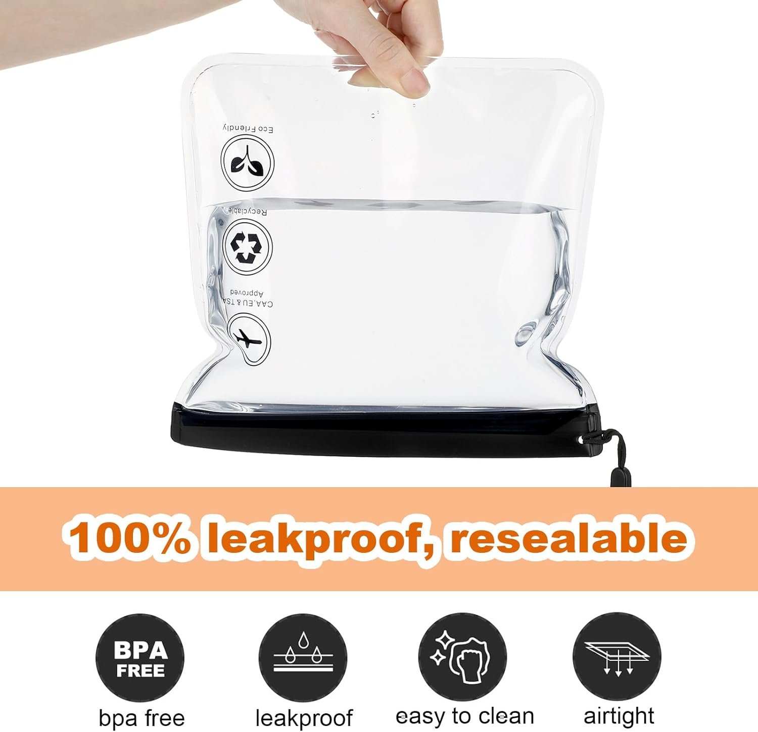 Airport Security Approved: Airport security liquids bag measures 20 x 20cm/7.87 x 7.87in(L x W), meets CAA & US & UK & EU airport security requirements for carry-on liquid bags