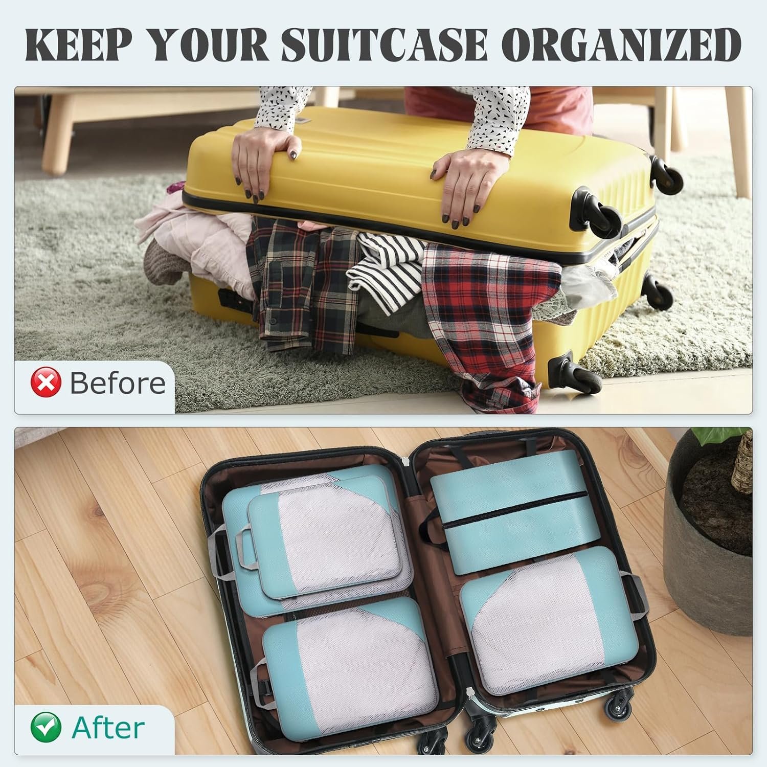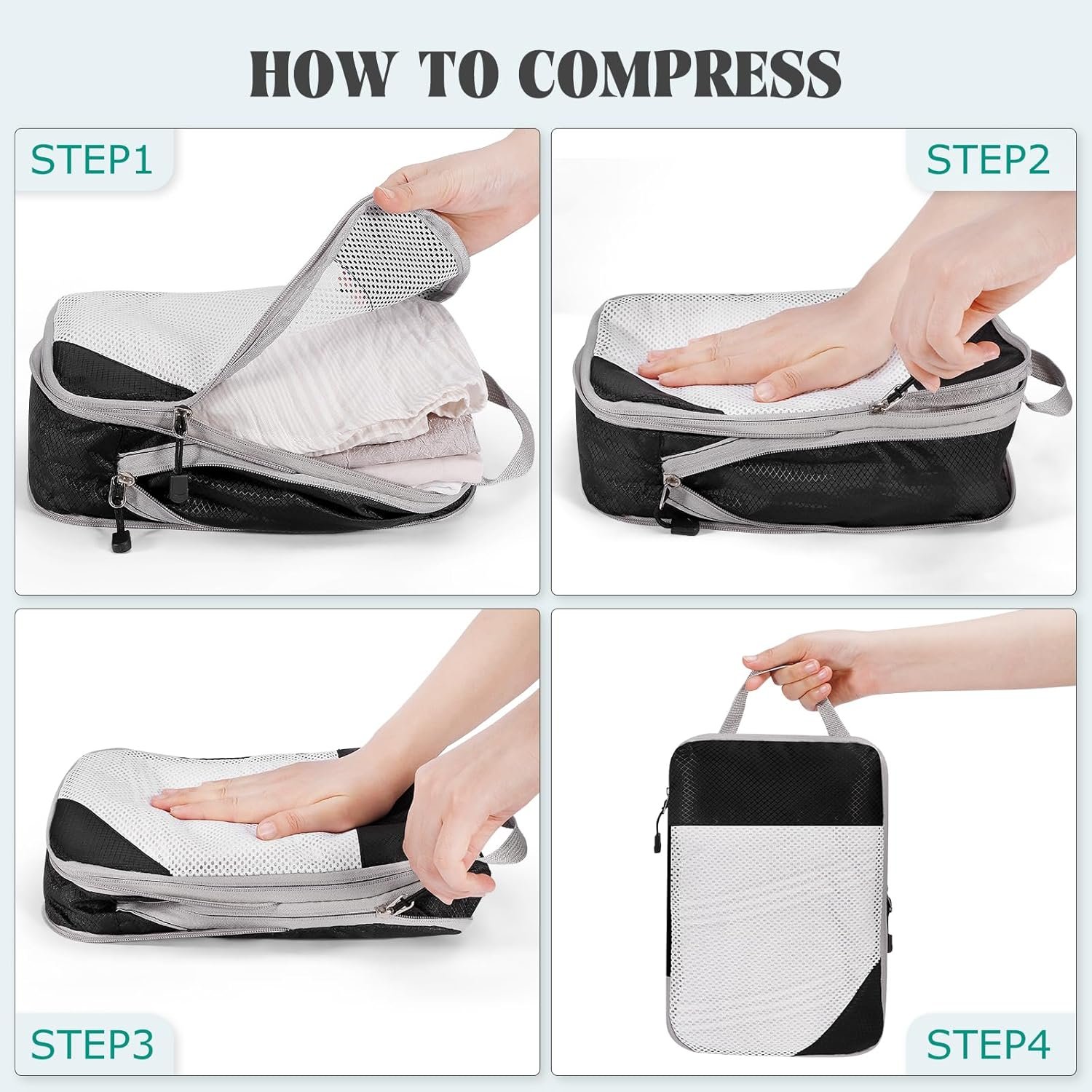 TRAVEL ESSENTIALS: The compression packing cubes which are lightweight and compact have must travel accessories, it won’t add any extra weight to your luggage, making it easy to carry and store all your essentials. The well-designed dividers allow for efficient organization, keeping your belongings organized and easy to access.