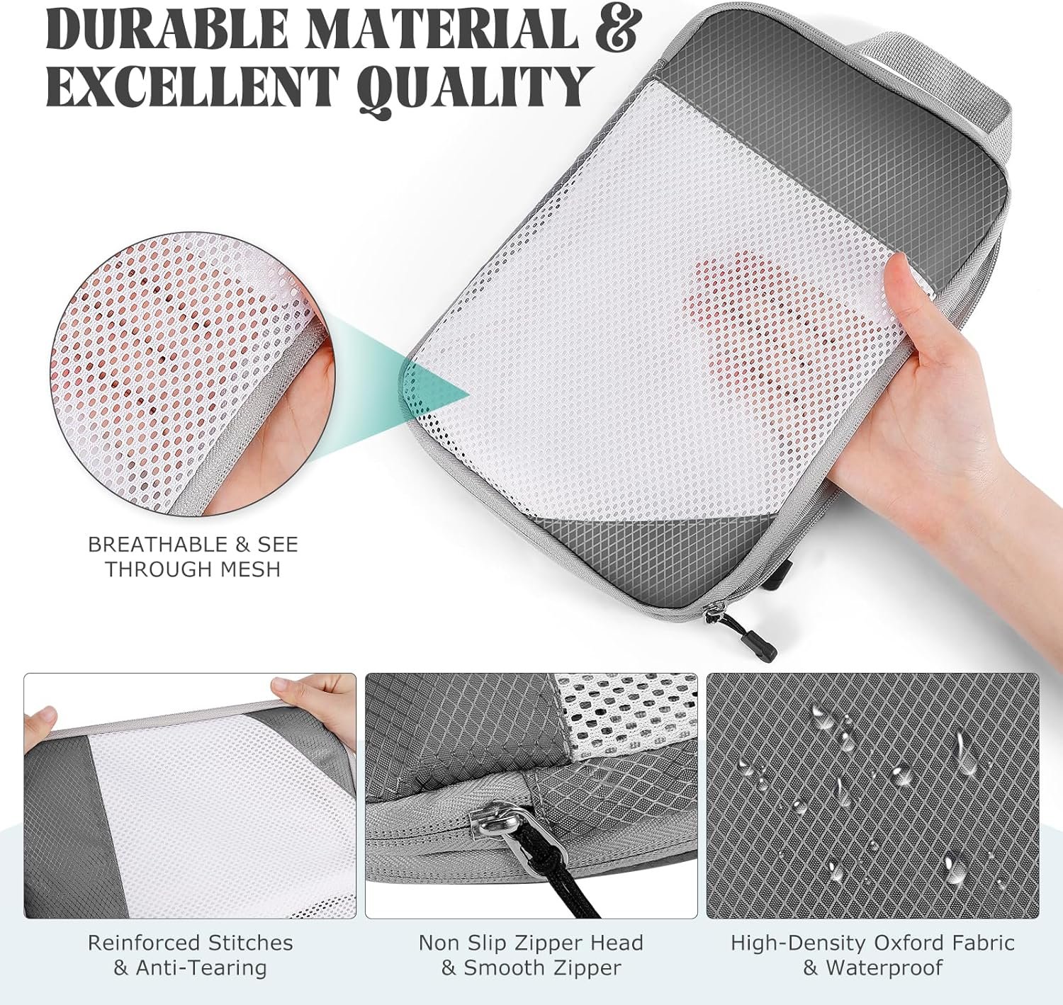 DURABLE MATERIAL: Made of high-density Oxford fabric, it has excellent waterproof and breathable functions, providing the best protection for clothing. Double smooth zipper design for easily compressed and expandable. The see through mesh allows direct visibility of the contents within the pouches, convenient for quick sorting and searching and clear for packing.