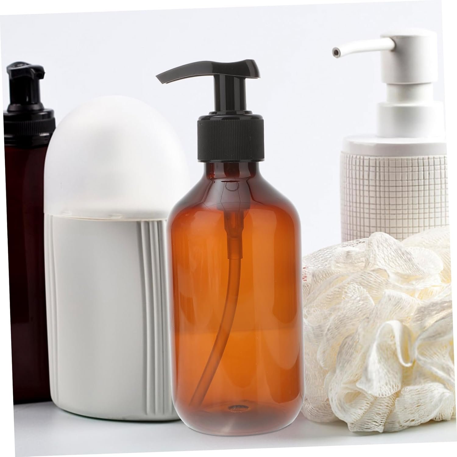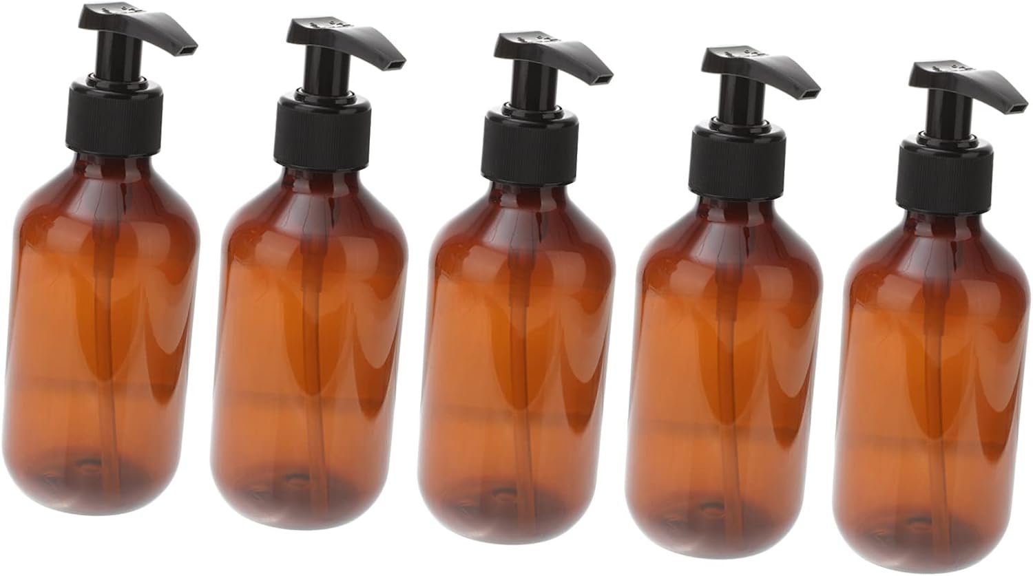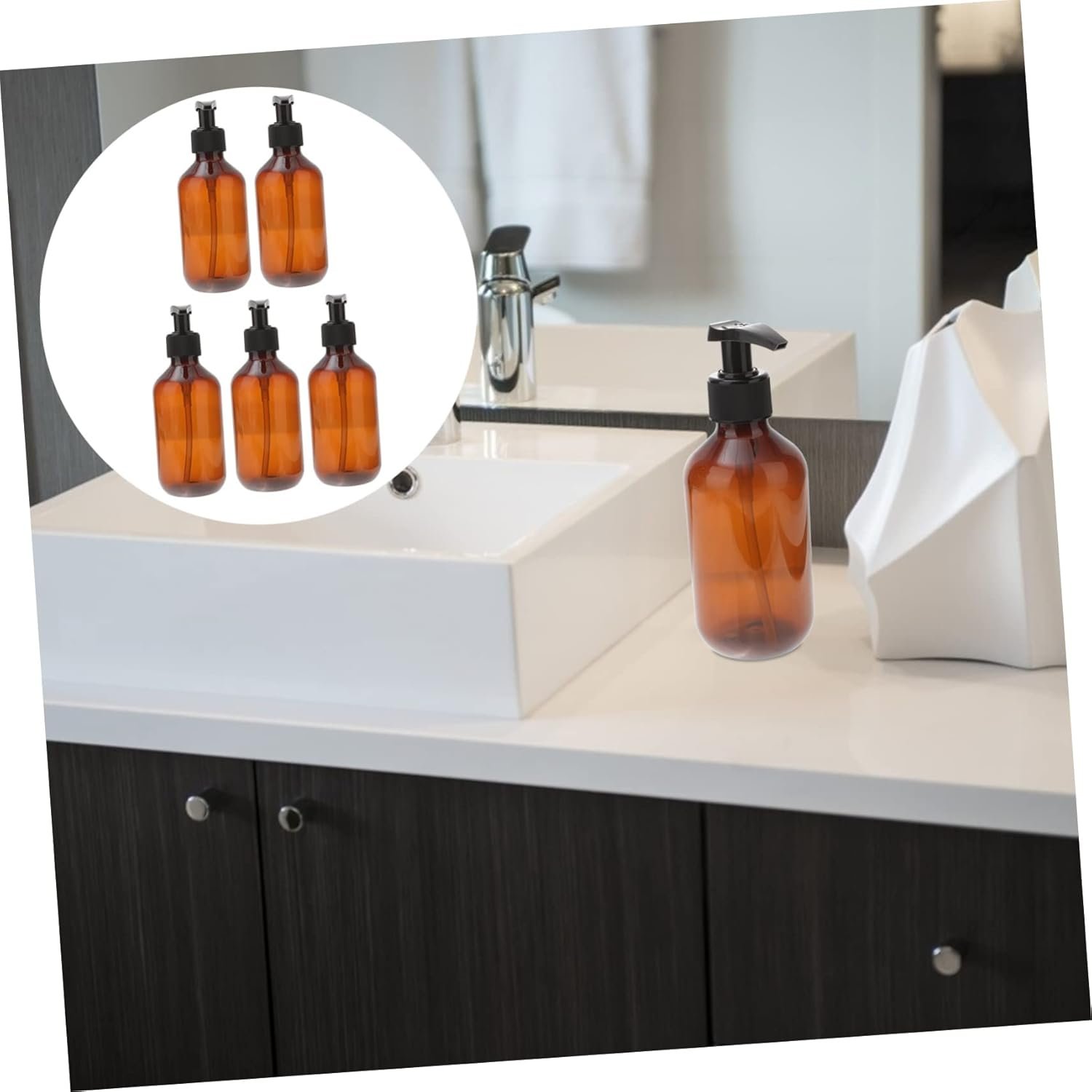 5Pcs Refillable Plastic Bottles with Pump Dispenser Travel Containers for Shampoo Liquid Soap and Brown