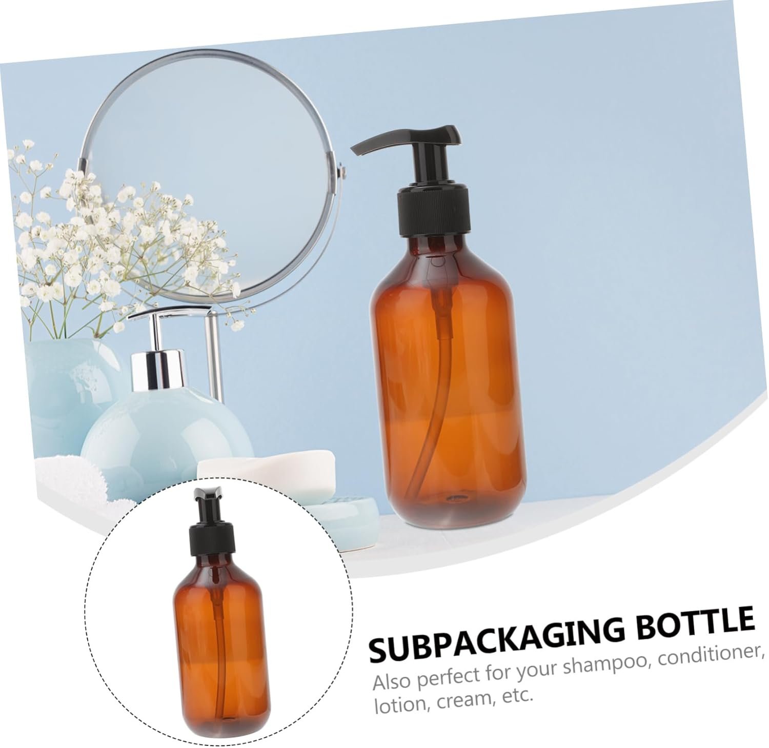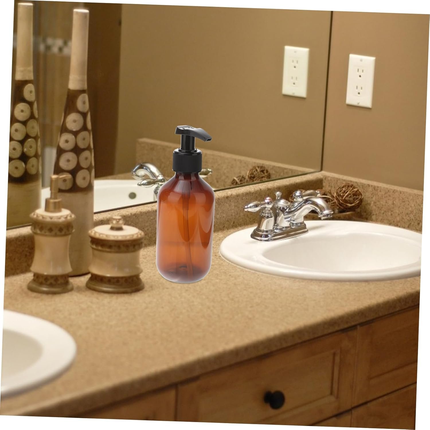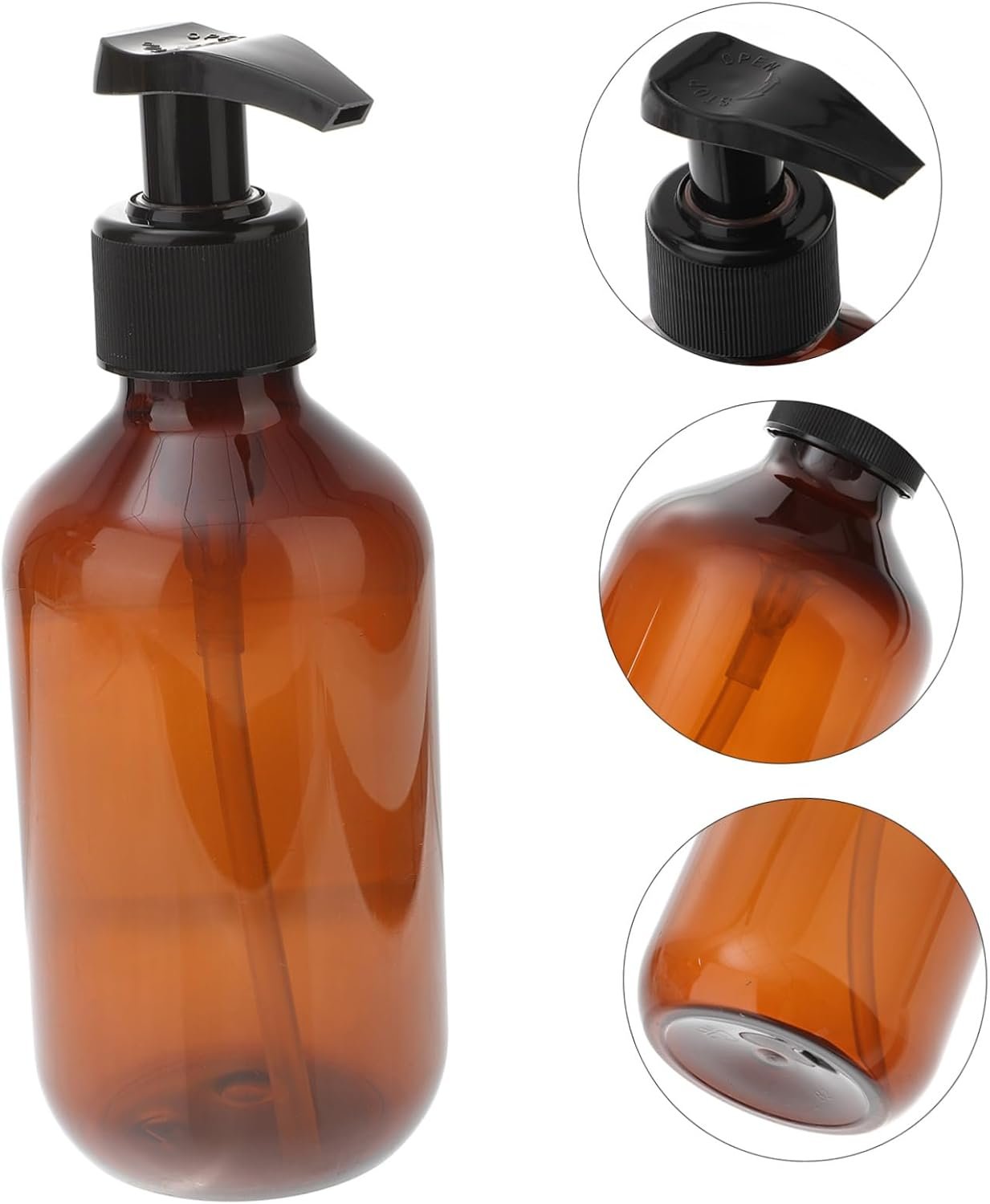 5Pcs Refillable Plastic Bottles with Pump Dispenser Travel Containers for Shampoo Liquid Soap and Brown