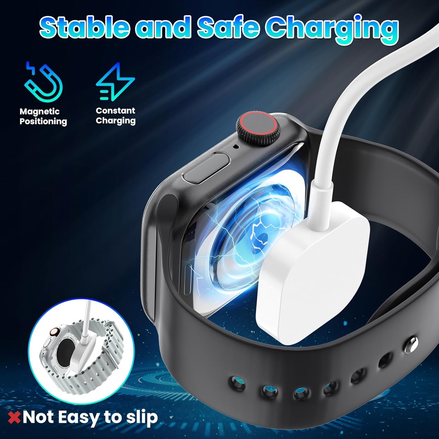 Magnetic iWatch Charger:The iwatch charger by using advanced magnetic technology, simply place the connector close to the back of the watch and it will automatically pull it into place, providing stable and fast charging for the watch