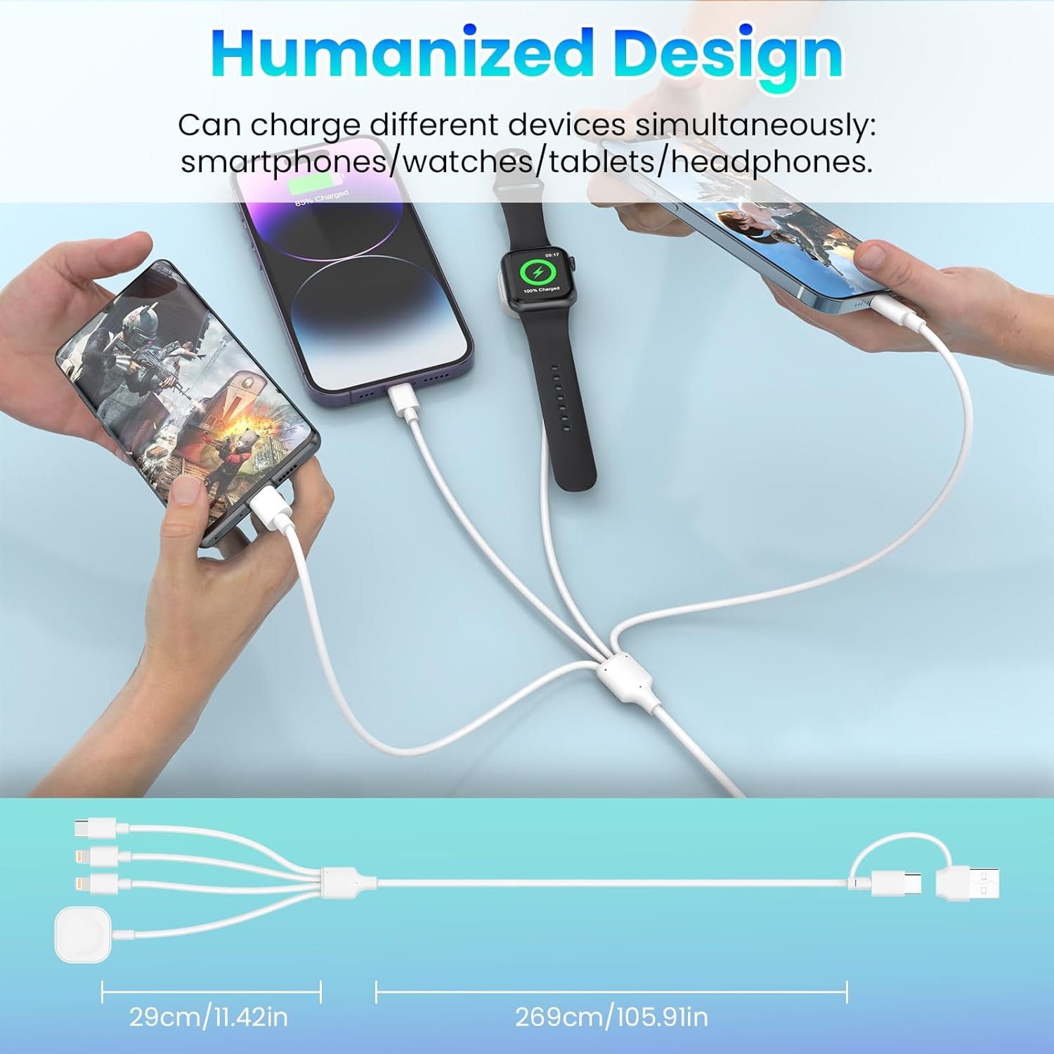 Wide Compatibility:Opluz multi USB A/C charging cables are compatible with iPhone 16/15/14/13/12/11; IWatch series Ultra/9/8/7/6/SE2/SE/5/4/3/2/1; IPad/ Airpods; Most Android phones and wireless accessories; Galaxy S24/S23/S22/S21/S20/S10, Huawei, HTC