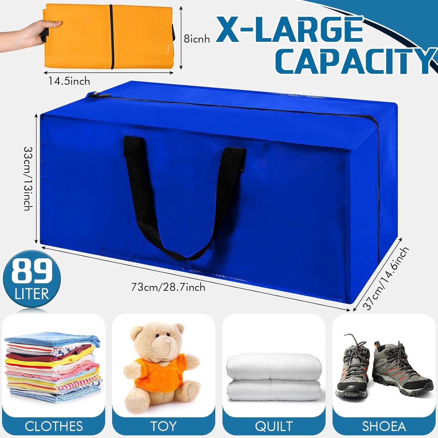 Extra Large Capacity: our heavy duty moving bags are approx. 29 x 13 x 15 inches (W x H x D), with 23 gallons/ 86 liters capacity; These strong moving storage bags will safely hold up to 80 lbs; Oversize and extra large capacity to fit clothes, bedding, comforters, blankets, books, toys
