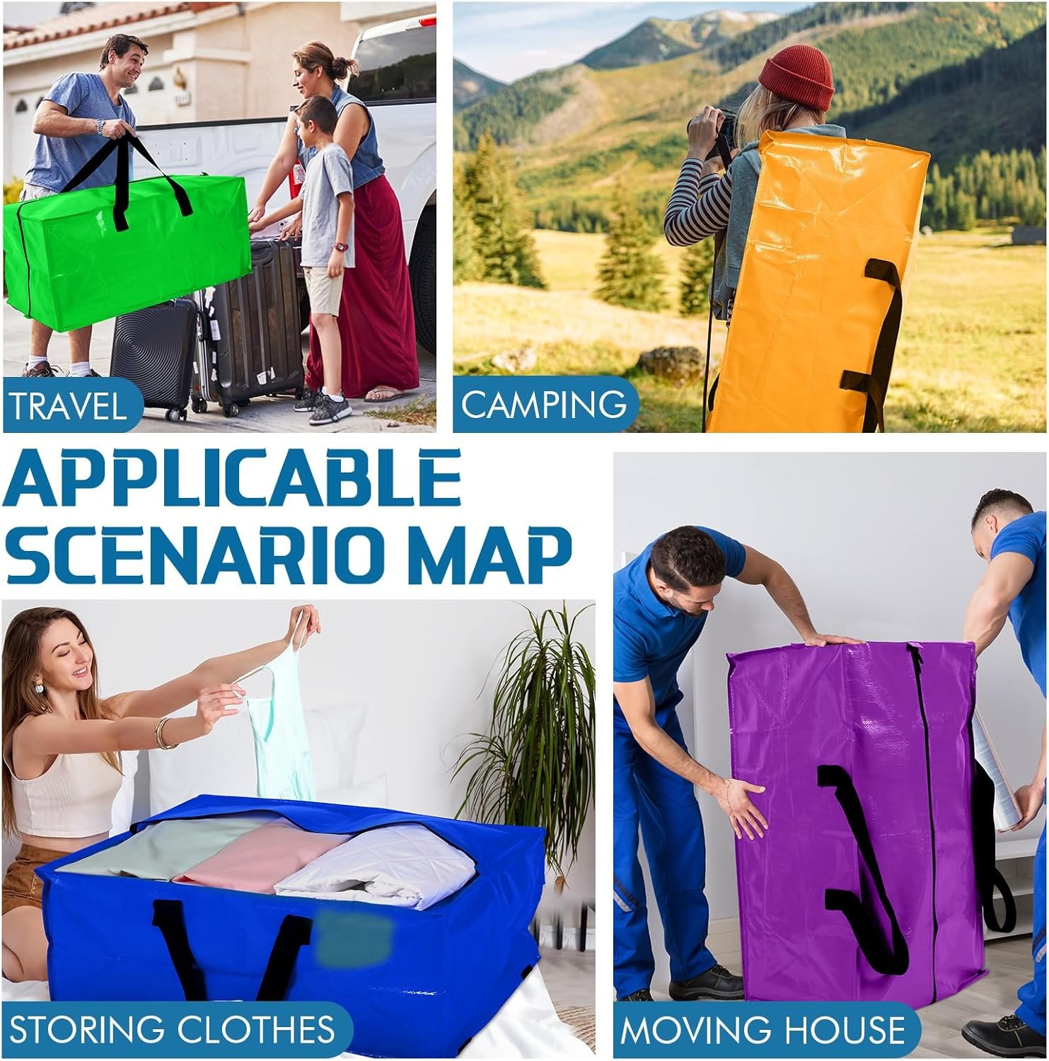 6 Pack Heavy Duty Moving Bags Extra Large Storage Totes with Backpack Straps Handles and Zippers for Space Saving Storage Alternative to Moving Boxes Multi Color Packing Bag(Rainbow)