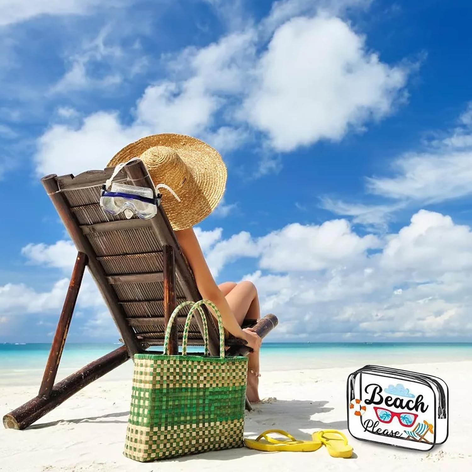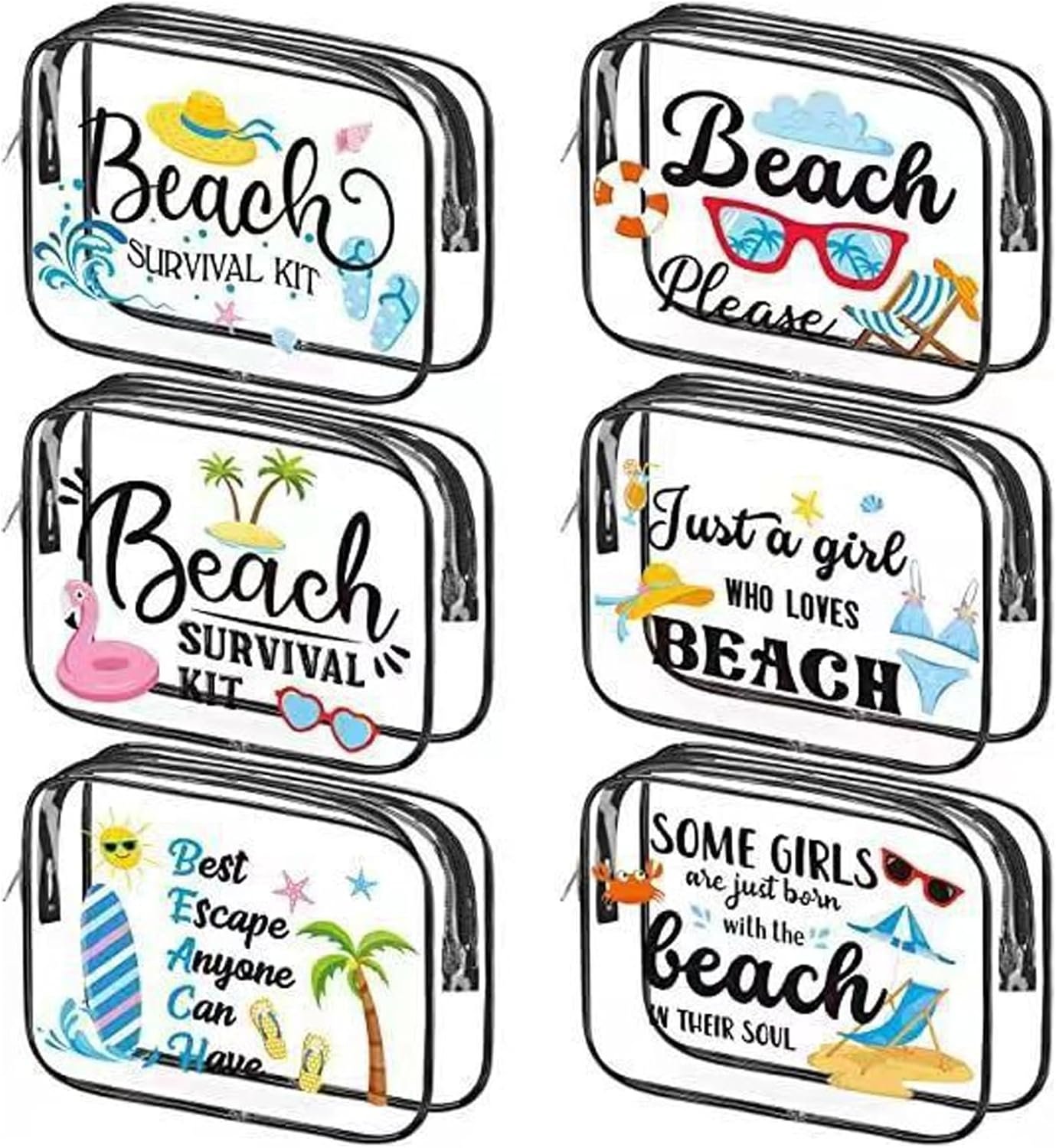 6 Pcs Beach Clear Makeup Bags Gift for Women Bulk Toiletry Bag Beach Cosmetic Bags Beach Accessories for Women Waterproof Travel Bags Multifunction Pouch for Friend Sister Vacation Organization