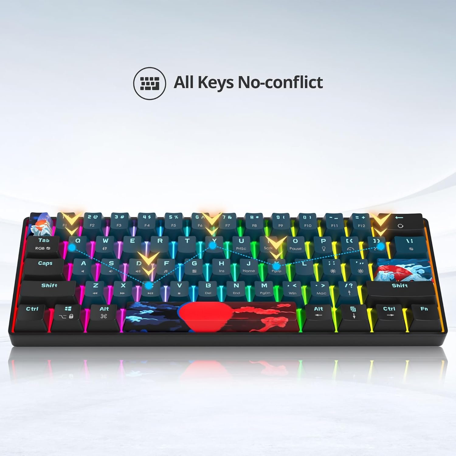Compact 60% Mechanical Gaming Keyboard: Experience superior gaming performance wherever you go with our portable 60 percent keyboard. Its compact size and sturdy construction make it perfect for both gaming and professional use. The 61 keys ultra-compact layout maximizes desk space without sacrificing functionality.