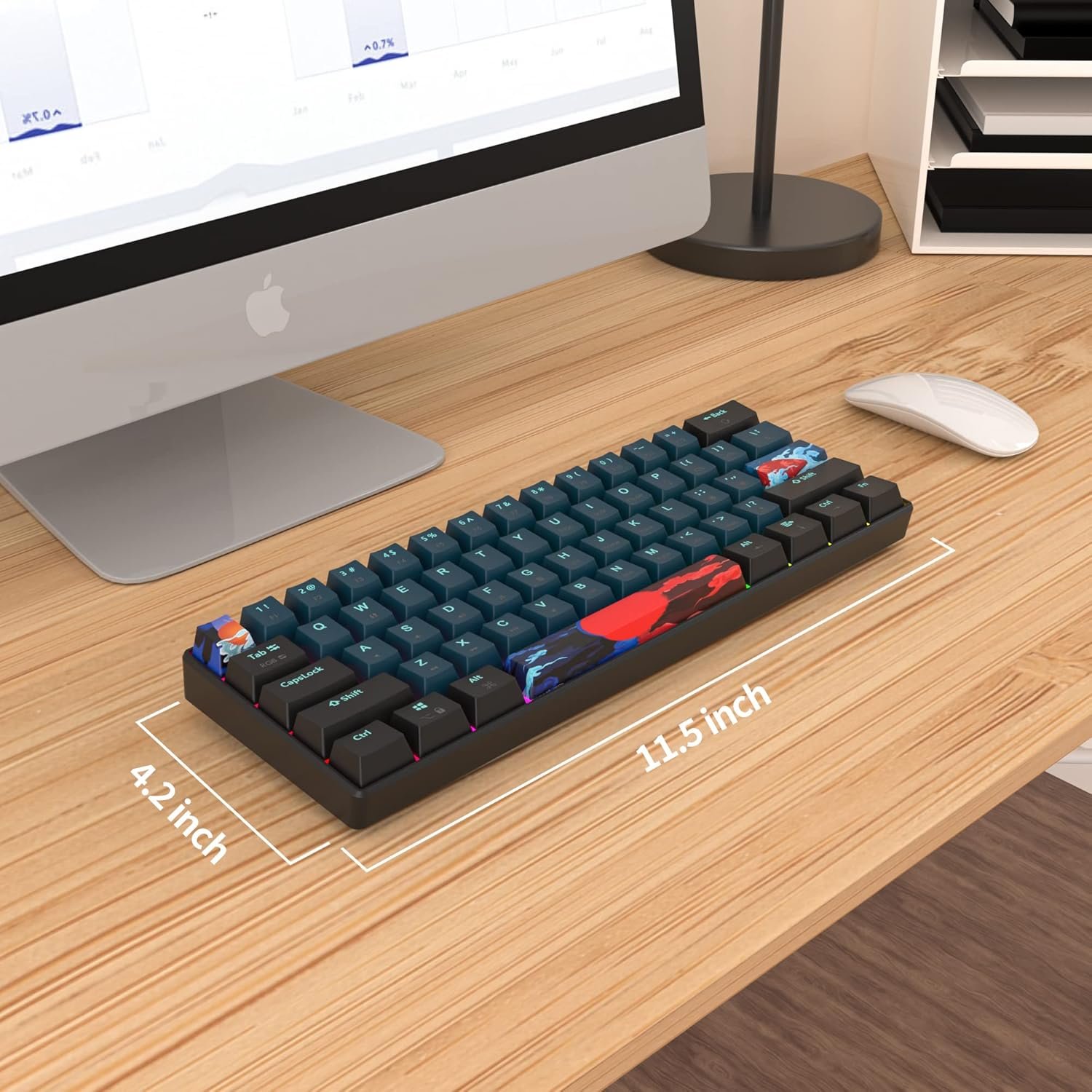 This 60% small mechanical keyboard is ultra-compact. Its small size helps you save space on your desktop.