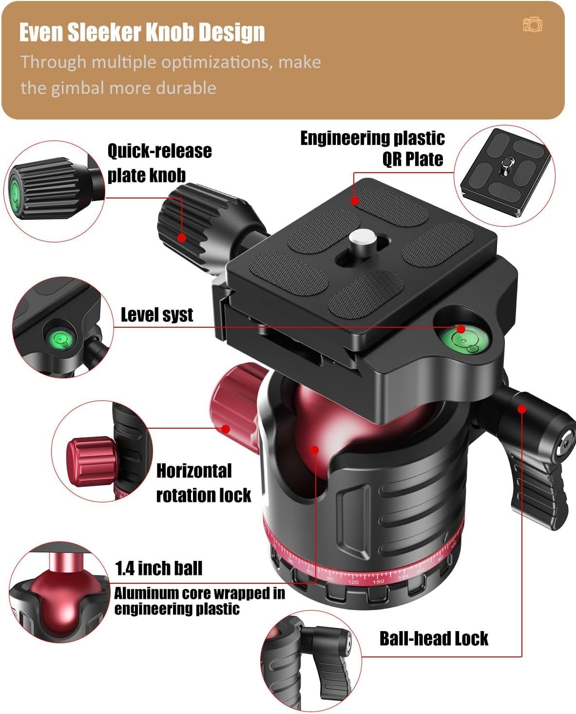 【UPGRADED NEW PRODUCT】We have significantly improved the craftsmanship of this tripod stand: 1. The tripod components are crafted using CNC machining, resulting in minimal tolerances. As a result, adjusting the camera’s angle on the ball head feels as smooth as silk. 2. We’ve optimized the ball head structure, removing unnecessary accessories to further reduce weight. 3. The load-bearing components are cast in a single piece and made from high-strength engineering plastic, ensuring exceptional durability and lightweight design.