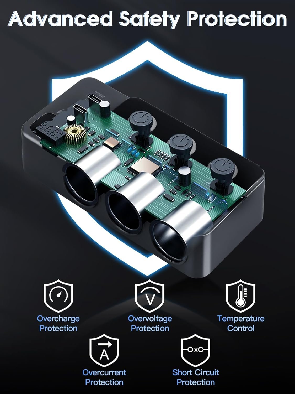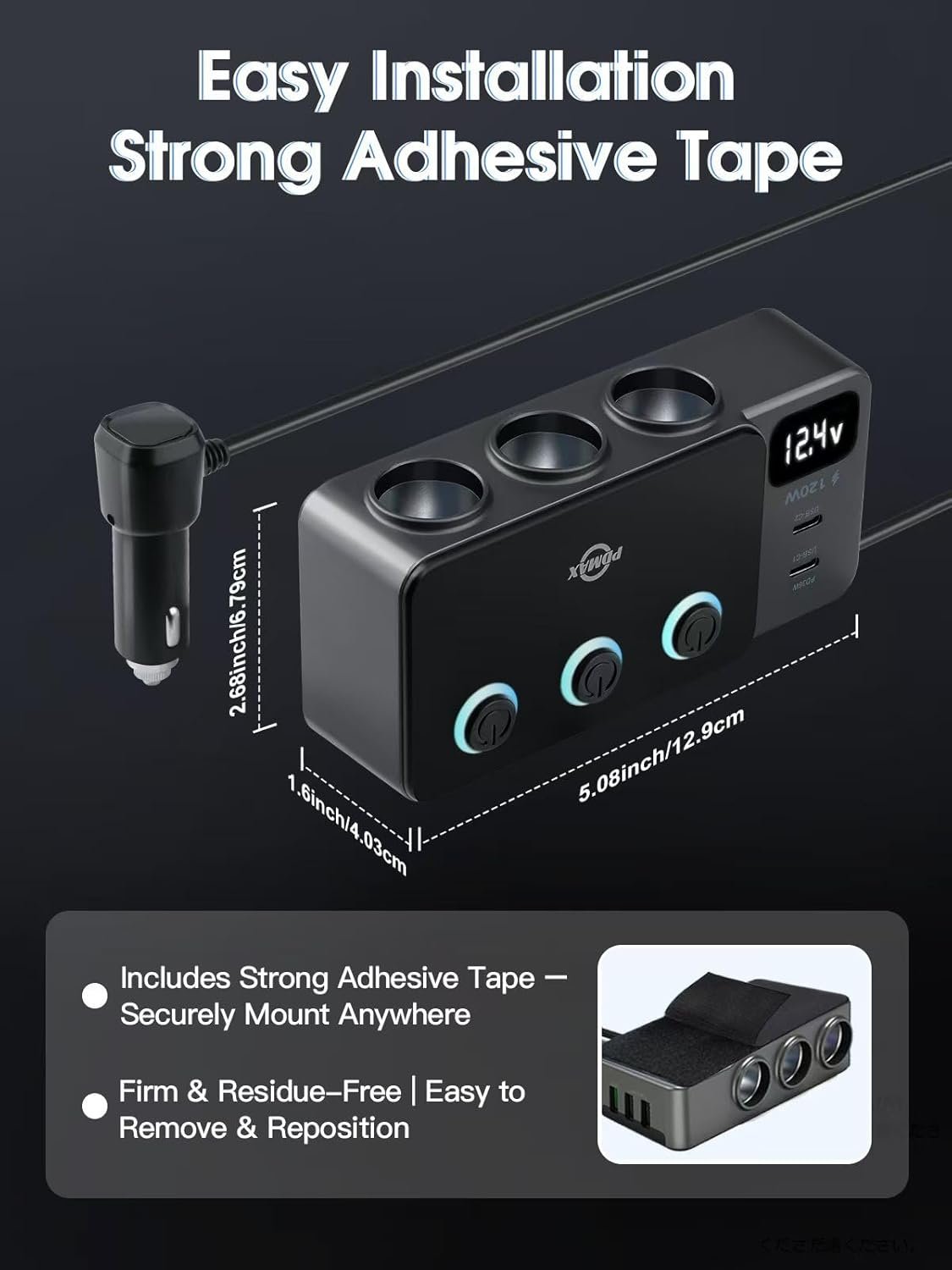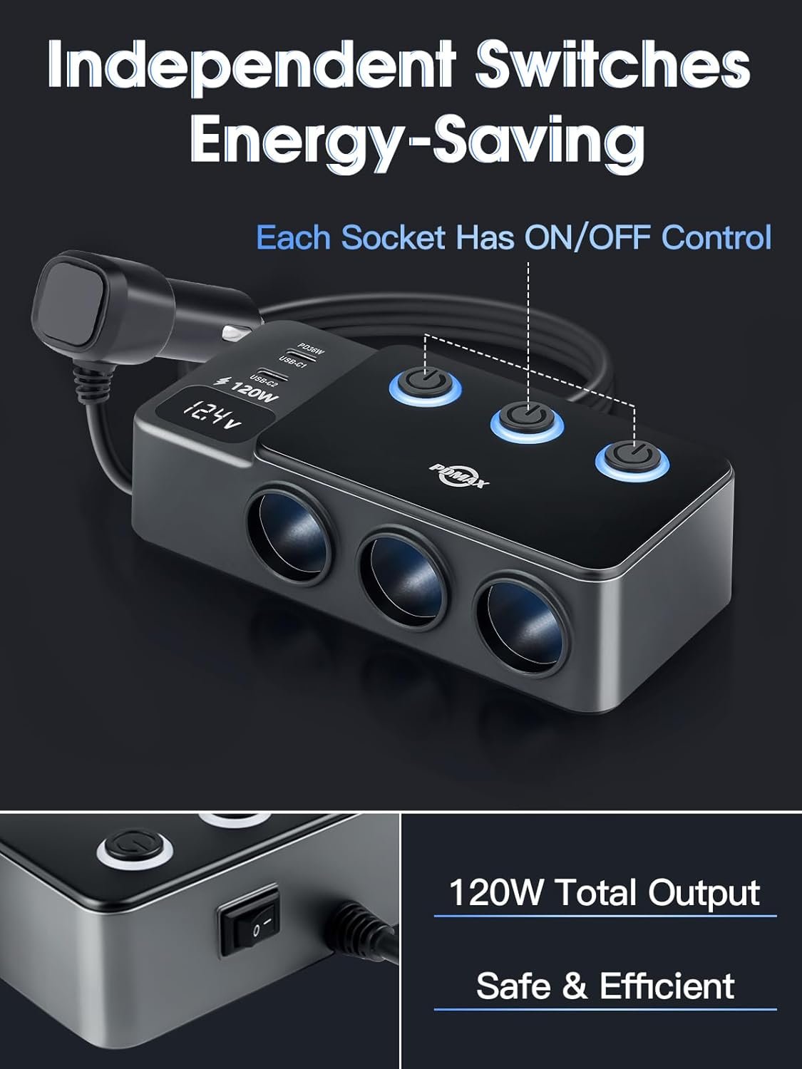 🔋 Independent Switches – Energy-Saving & Safe:Each cigarette lighter socket has an individual ON/OFF switch, allowing you to control each port separately. Includes a main power switch to prevent battery drain when not in use.