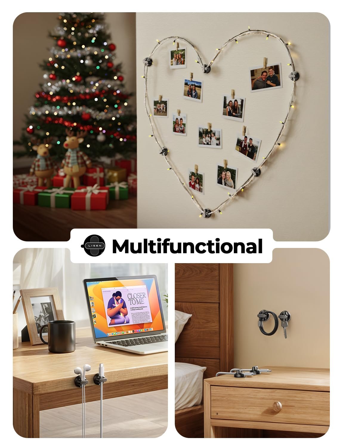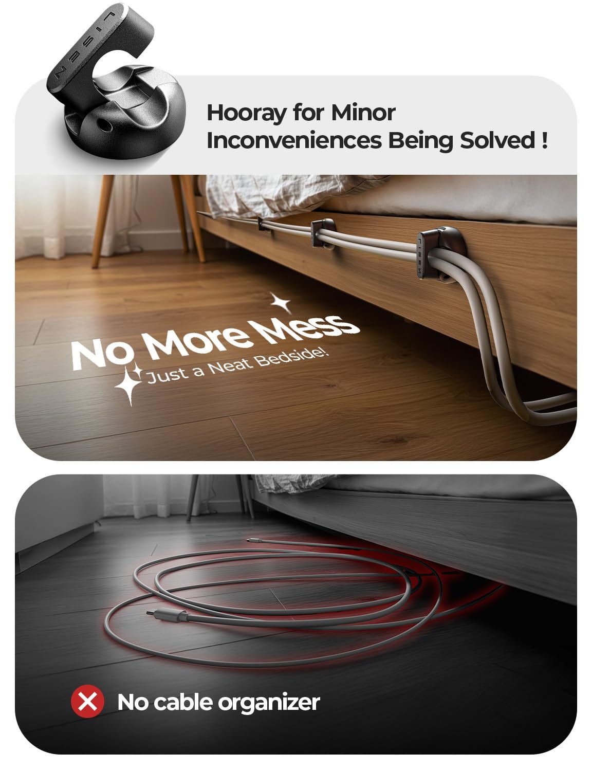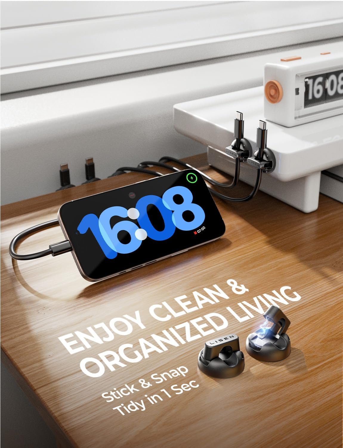 Cable Clips for Easy One-Handed Use: LISEN magnetic cable clip offer a unique magnetic opening and closing mechanism, making it easy to place or remove cables with just one hand. Unlike ordinary cord holders, the 60° rotating shaft and magnetic locking system allow you to quickly grab or add a cord in seconds, ensuring convenience and efficiency